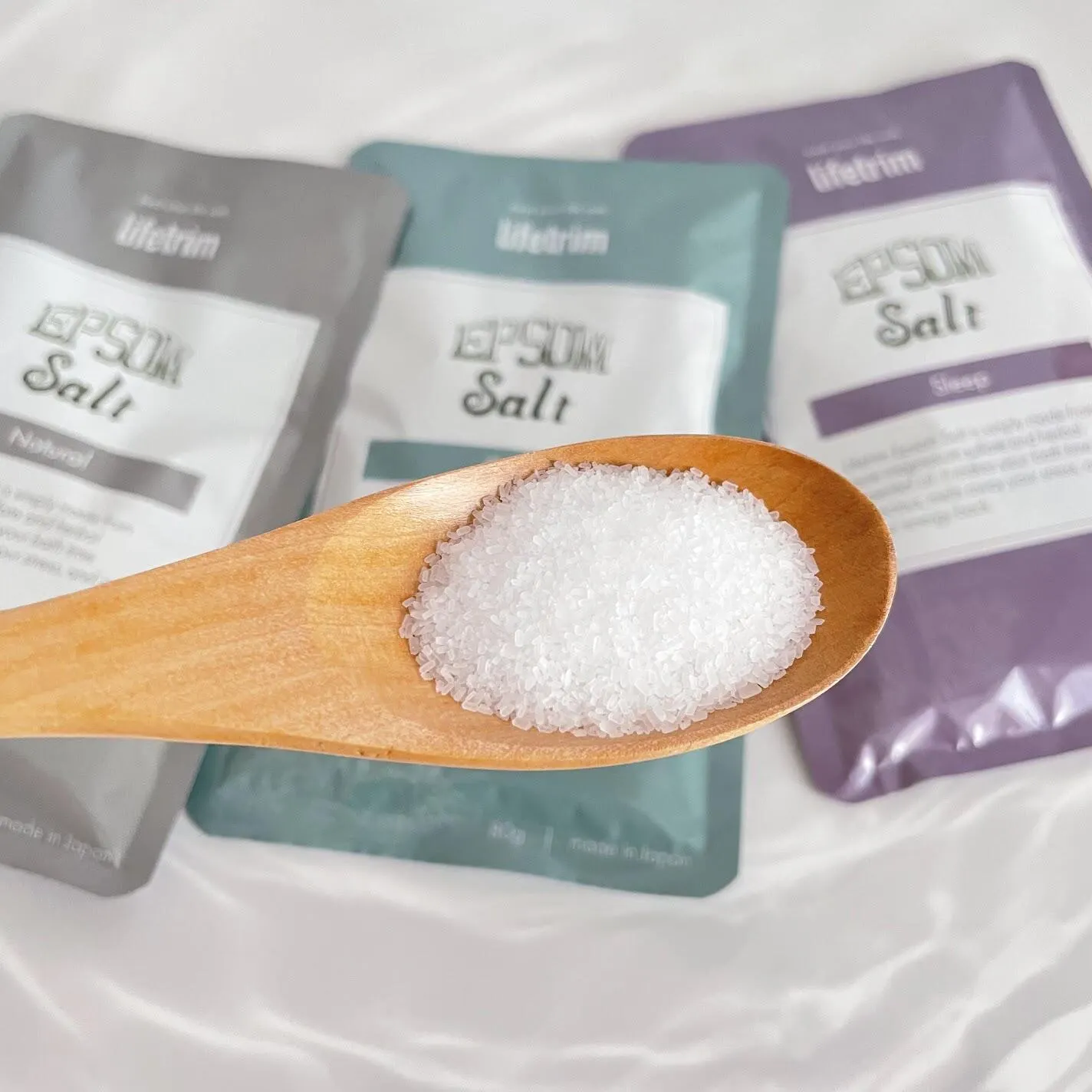 Lifetrimのエプソムソルトは国産・高純度にこだわり、その温浴効果は抜群です。また、お風呂時間を癒しのひとときになるよう、リラックスや癒しを与える香り高い天然のエッセンシャルオイルを独自に配合しました。