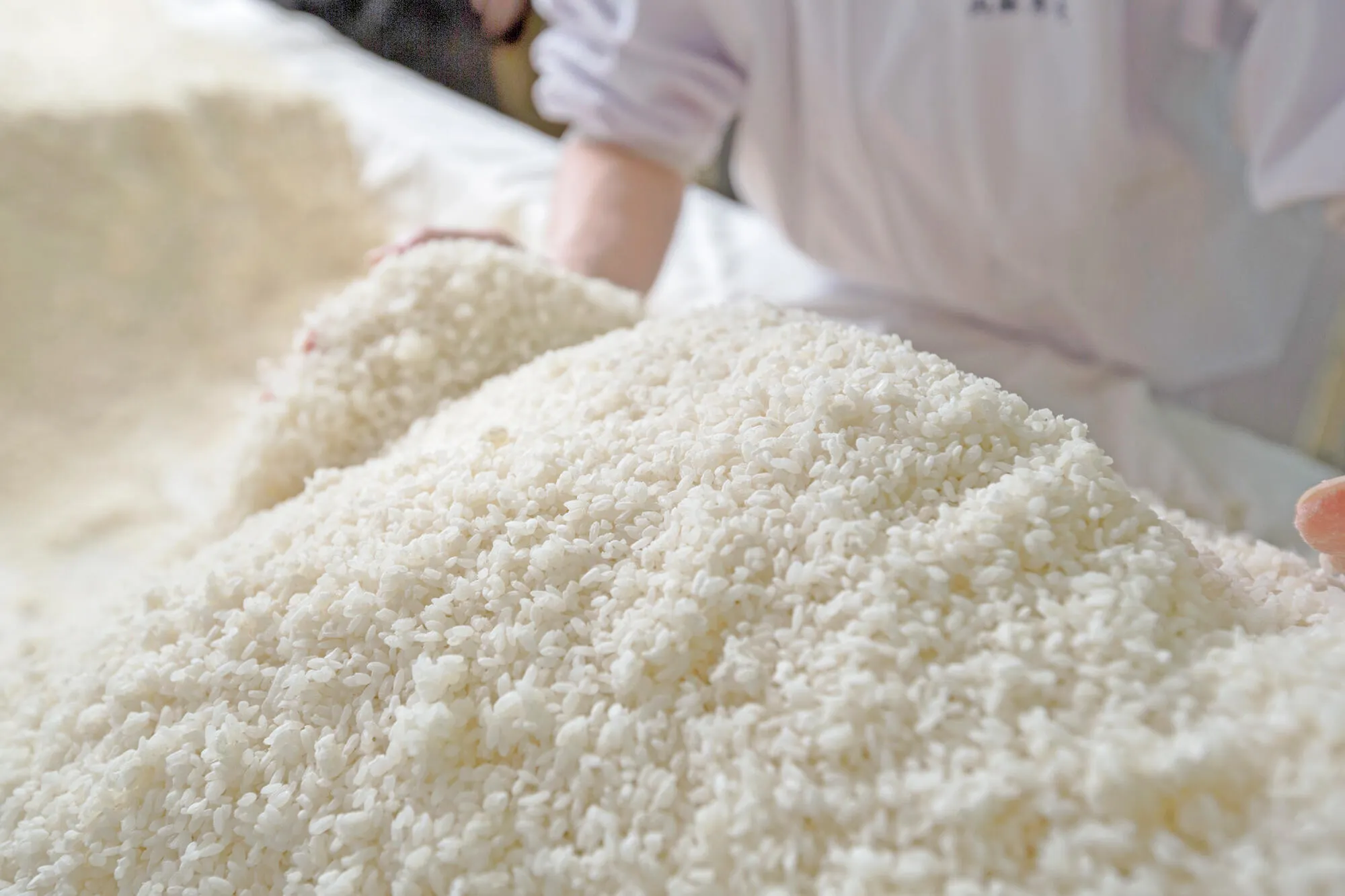 味噌の本命は麹にあり、これがうまくいかなければ、美味しい味噌はできません。1年中気温が変化する中で環境を調節し、「力の強い麹」を作ることが重要です。杜氏は手で触れて蒸し米の温度を感じ取り、長年の経験と勘で最適な状態を見極めます。