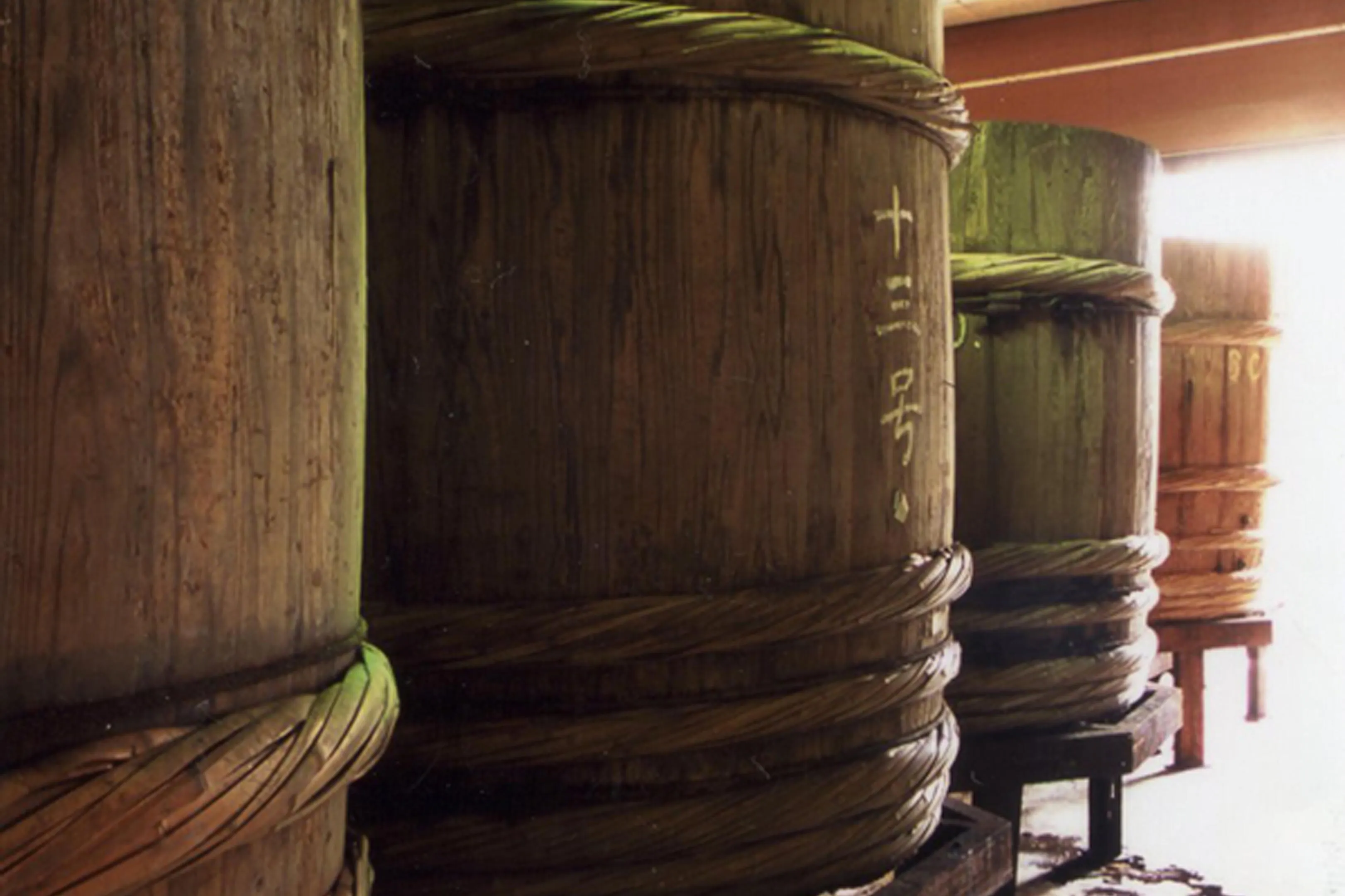 二百年近く使い続けている木桶。水分を含んだ木桶は外気の熱の影響を抑え、保温効果があり、発酵を良くします。私たちは自社の味噌から酵母菌を取り出して自家培養し、代々受け継がれてきた独自の菌の力で、香りと味を守り続けています。