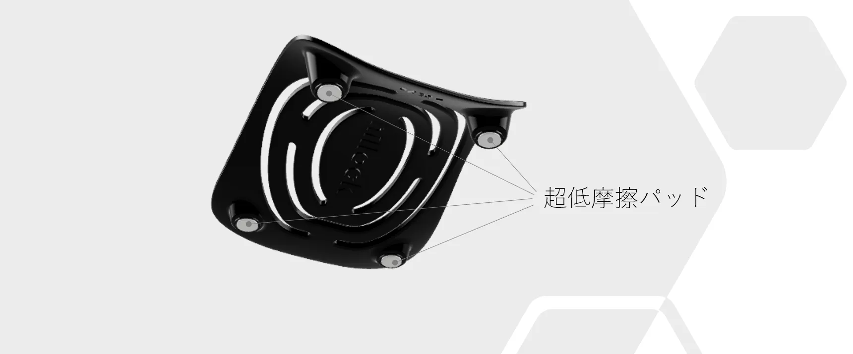 フッ素樹脂基材の超低摩擦パットにより、他の樹脂では得る事の出来ない超低摩擦性能を実現。