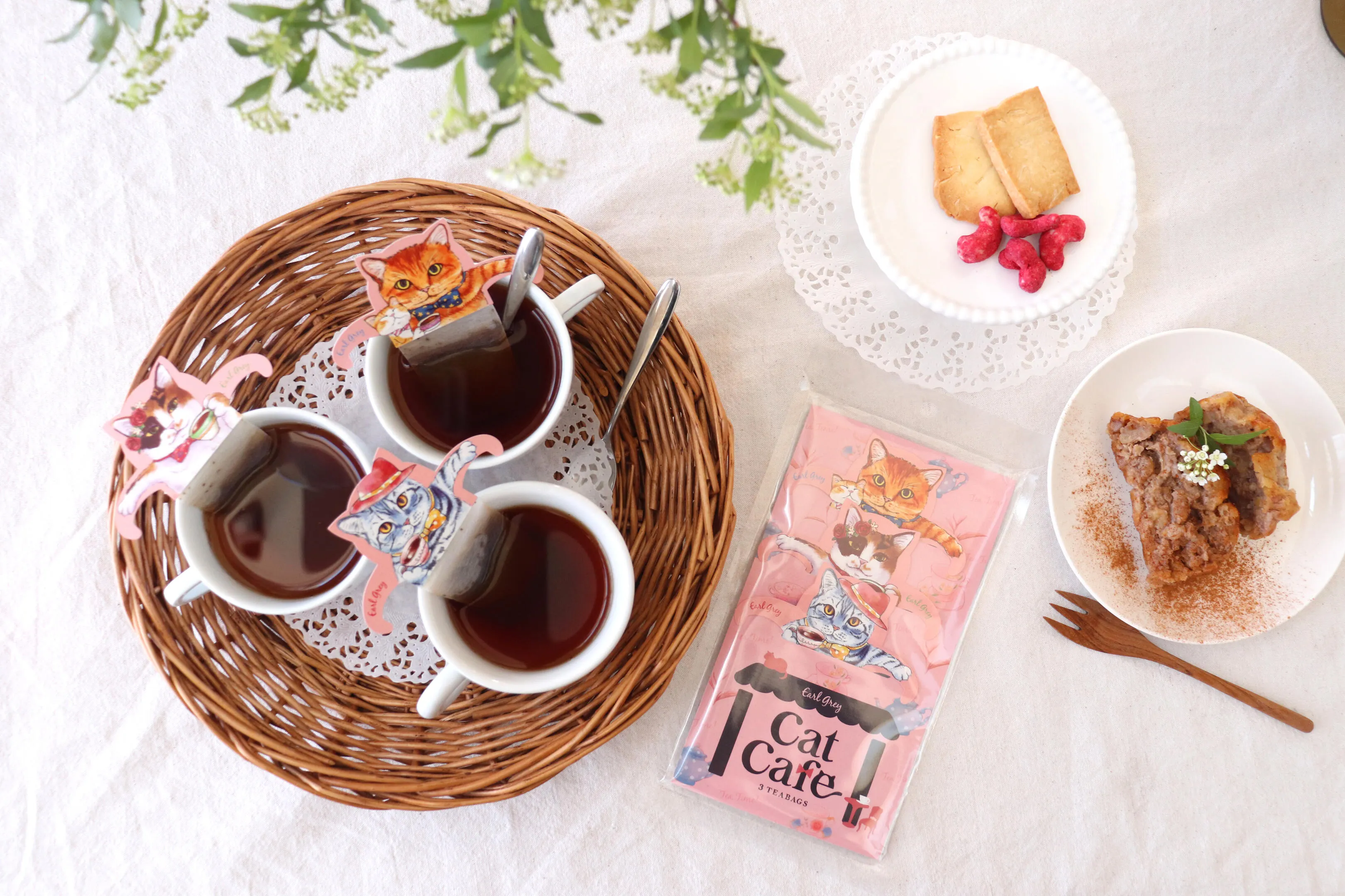 例えば『キャットカフェ』ではオシャレをしたねこ達がお茶会をしており、常連のねこ達のティータイムをイメージしています。ブレンドも華やかで高級感のある香りのアールグレイをブレンドしています。