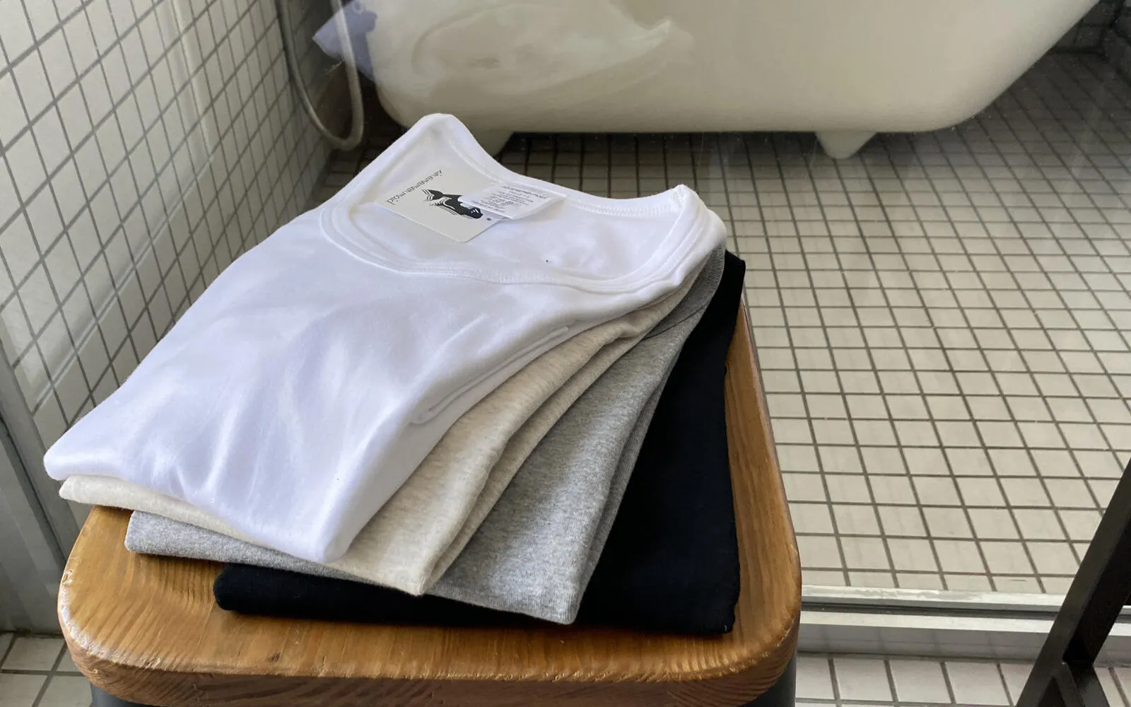 バリエーション豊富な丸胴コットンフライスシリーズはビンテージ編み機でゆっくりと編みたて、脇に縫い目がなく柔らかい着心地のよさからリピーターの多いシリーズです。