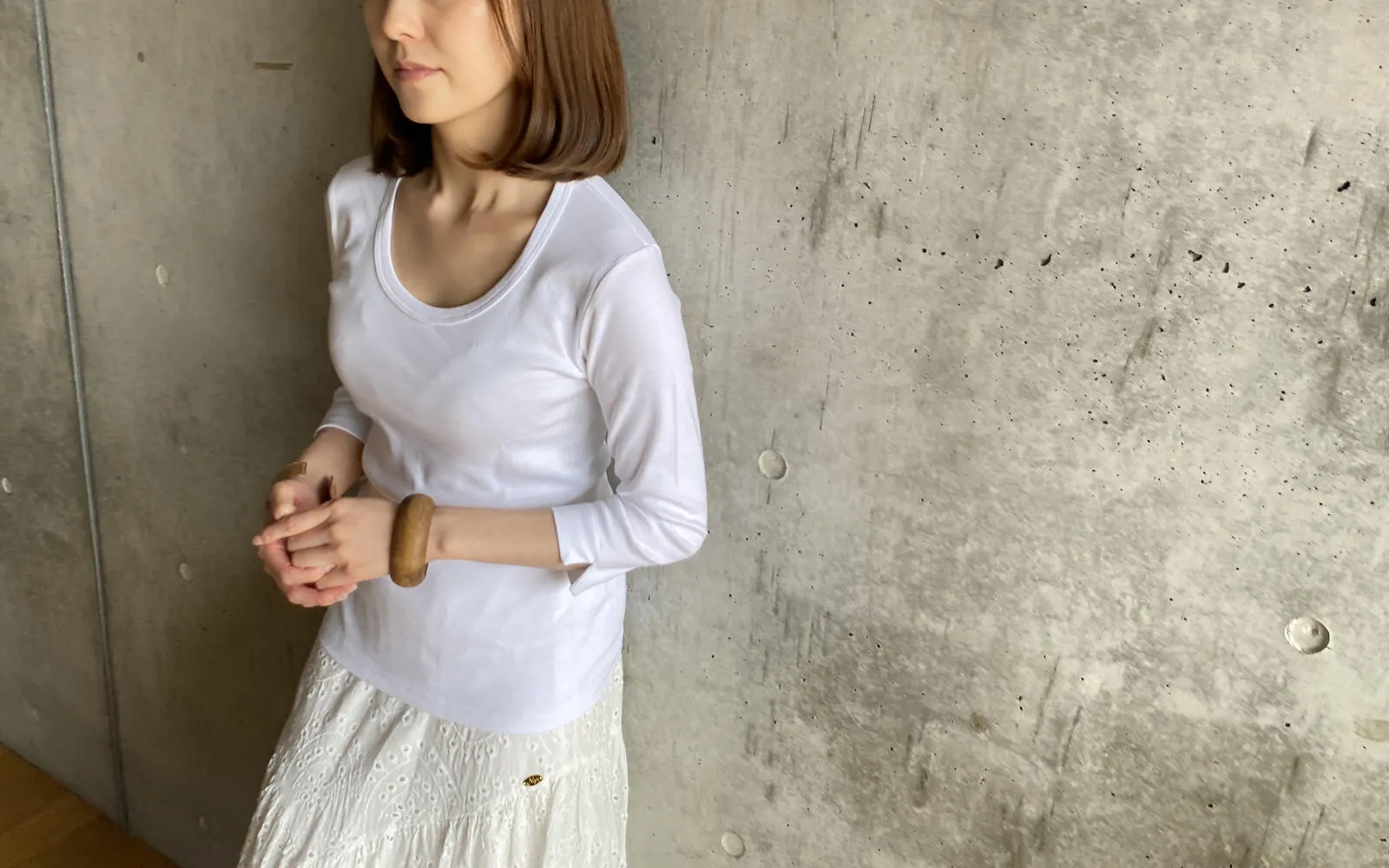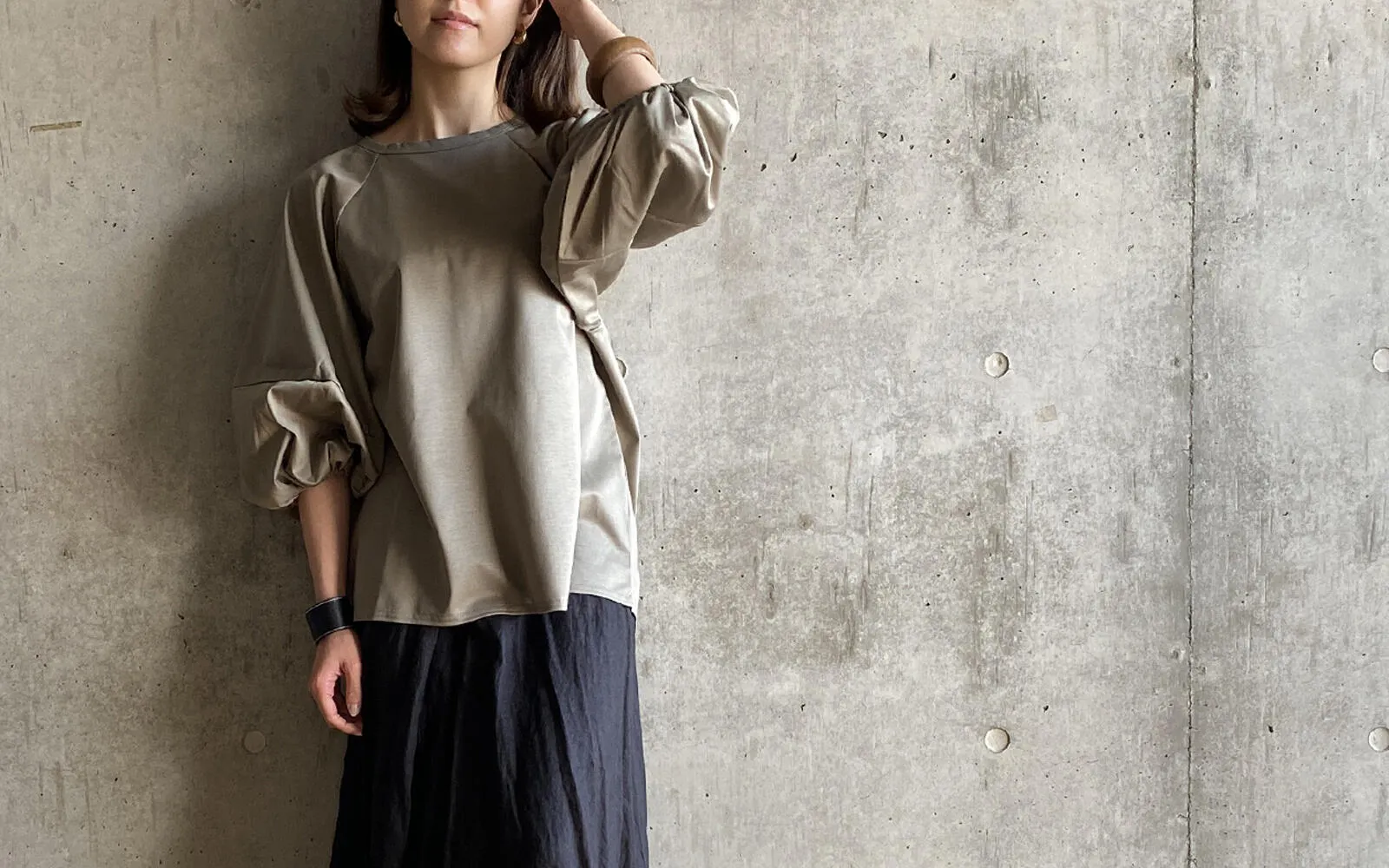 婦人服に永年携わってきましたが、ありそうでない進化したカットソーアイテムが欲しいという思いで、着心地のよさを第一に考え、リラックスできる上質な時間を過ごせるカットソーアイテムを中心に始めました。
