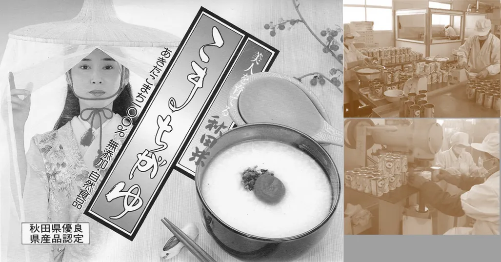 美味しい秋田県産「あきたこまち」を多くの人に食べてもらいたいと開発されたのが、発売以来ご愛顧をいただいている主力商品「こまちがゆ」です。
