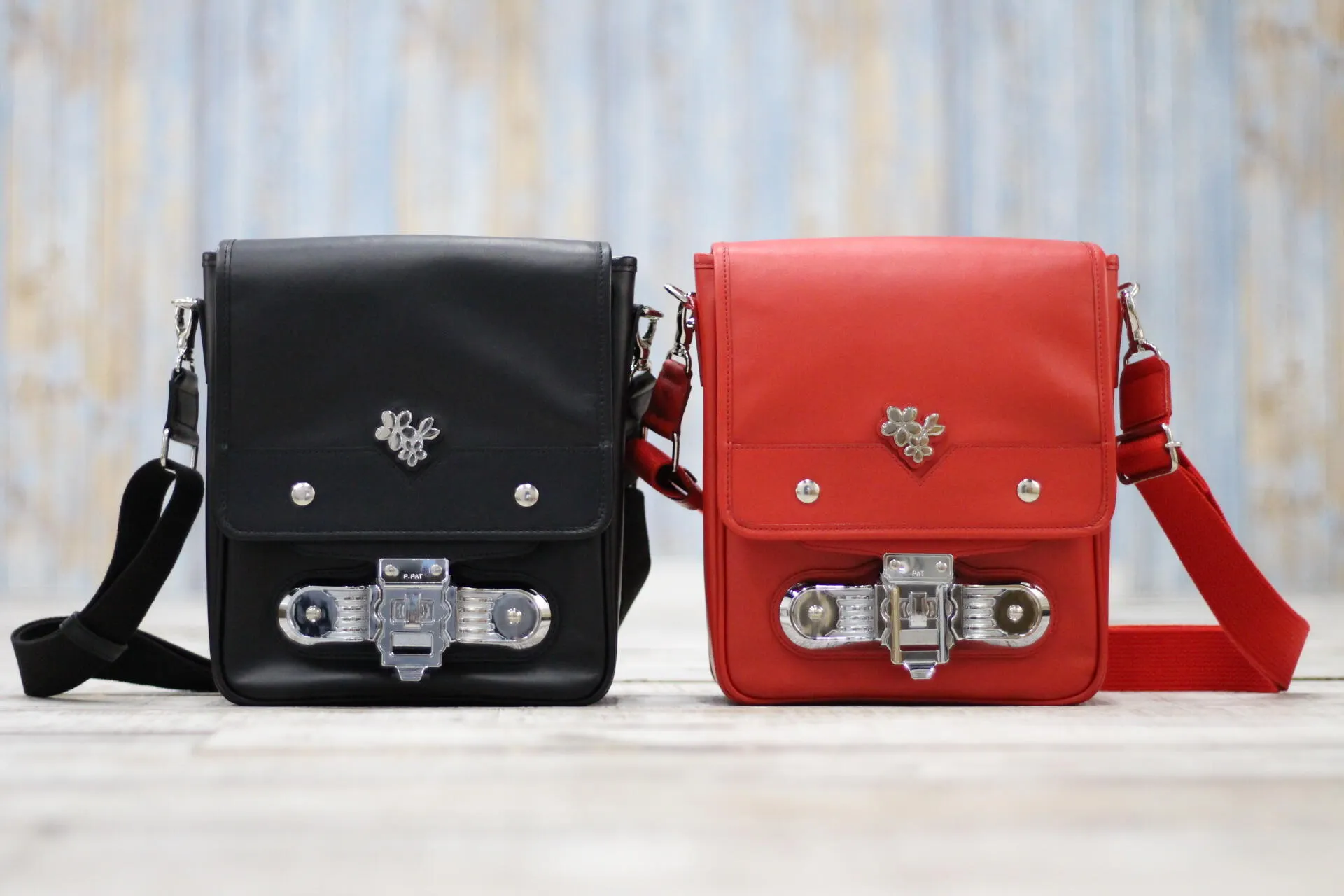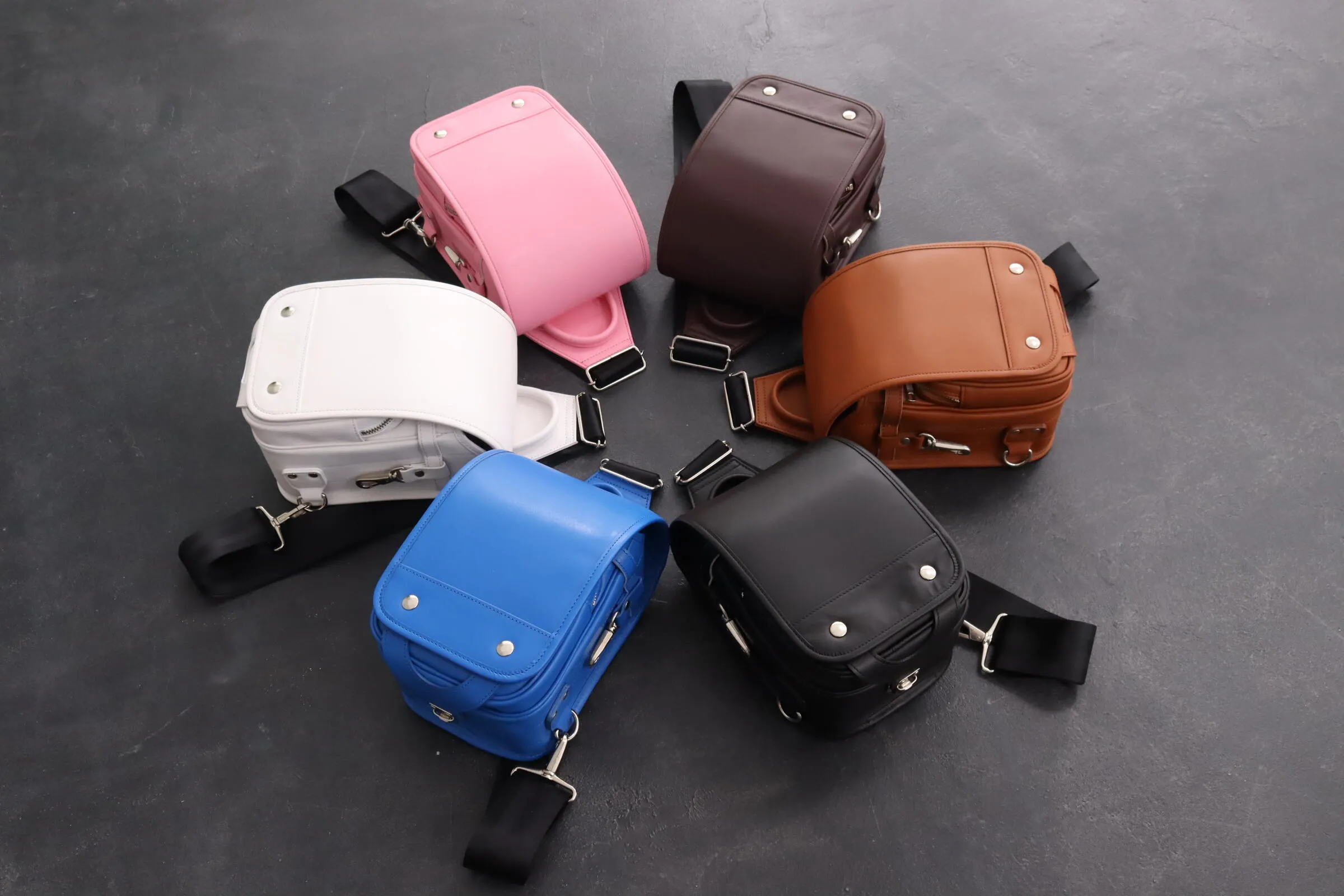 SaKuRandoseruのスリングバッグ(斜めがけバッグ)シリーズの最上級モデルです。ランドセルデザインを取り入れながら、さらに実際のランドセル部品『ランドセルワンタッチ錠前』・『ランドセルナスカン』を使用しました。ver1.1同様、ちょっとした外出などの普段使いや、旅行先での使用などに重宝します。牛本革製の本格的で上品な作りです。