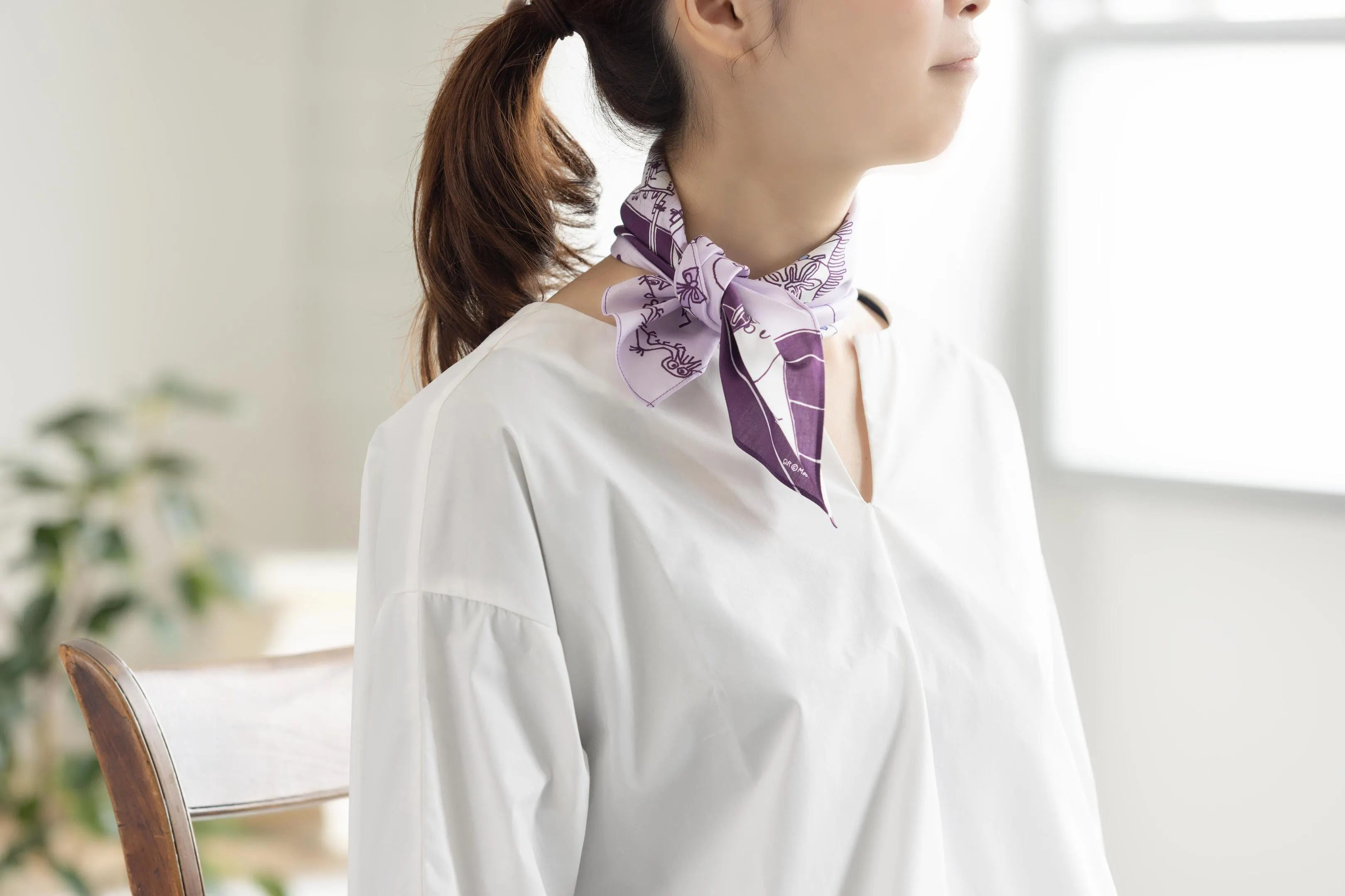 アート作品としても認知されているハンカチシリーズは、しなやかで軽く表面が美しいためにスカーフなどにも使われる80サテン生地を使用しています。