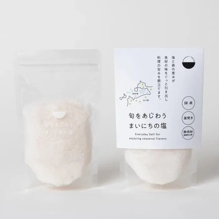 「旬をあじわう まいにちの塩」は、四季折々の森と海のエネルギーをそのままに焚き上げた、日々の料理に欠かせない万能塩です。カルシウム、マグネシウムのミネラル成分を含み、自然の恵みを活かす製法で、食材が本来もつ味わいを驚くほどぐっと引き立てます。炒め物・煮物などに使うだけで、毎日の料理の旨みが際立ちます。