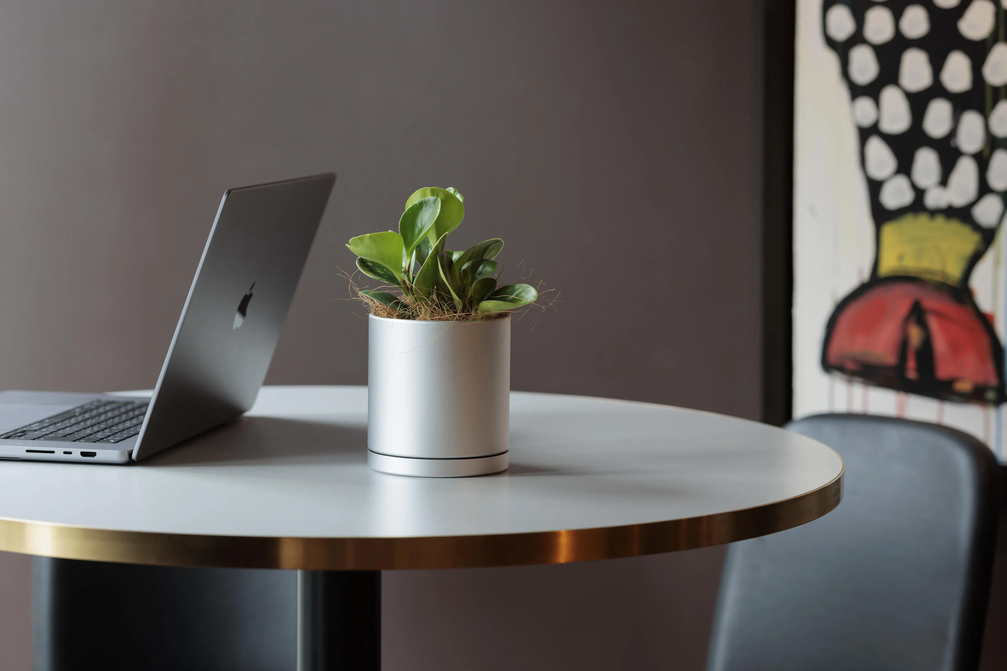 従来の鉢は屋外向けが中心で、室内に置くとどこか浮いてしまう。例えば食卓やキッチンにおくには少し抵抗感がある。仕事机にあるお気に入りのデバイスのデザインと何か合わない──。
