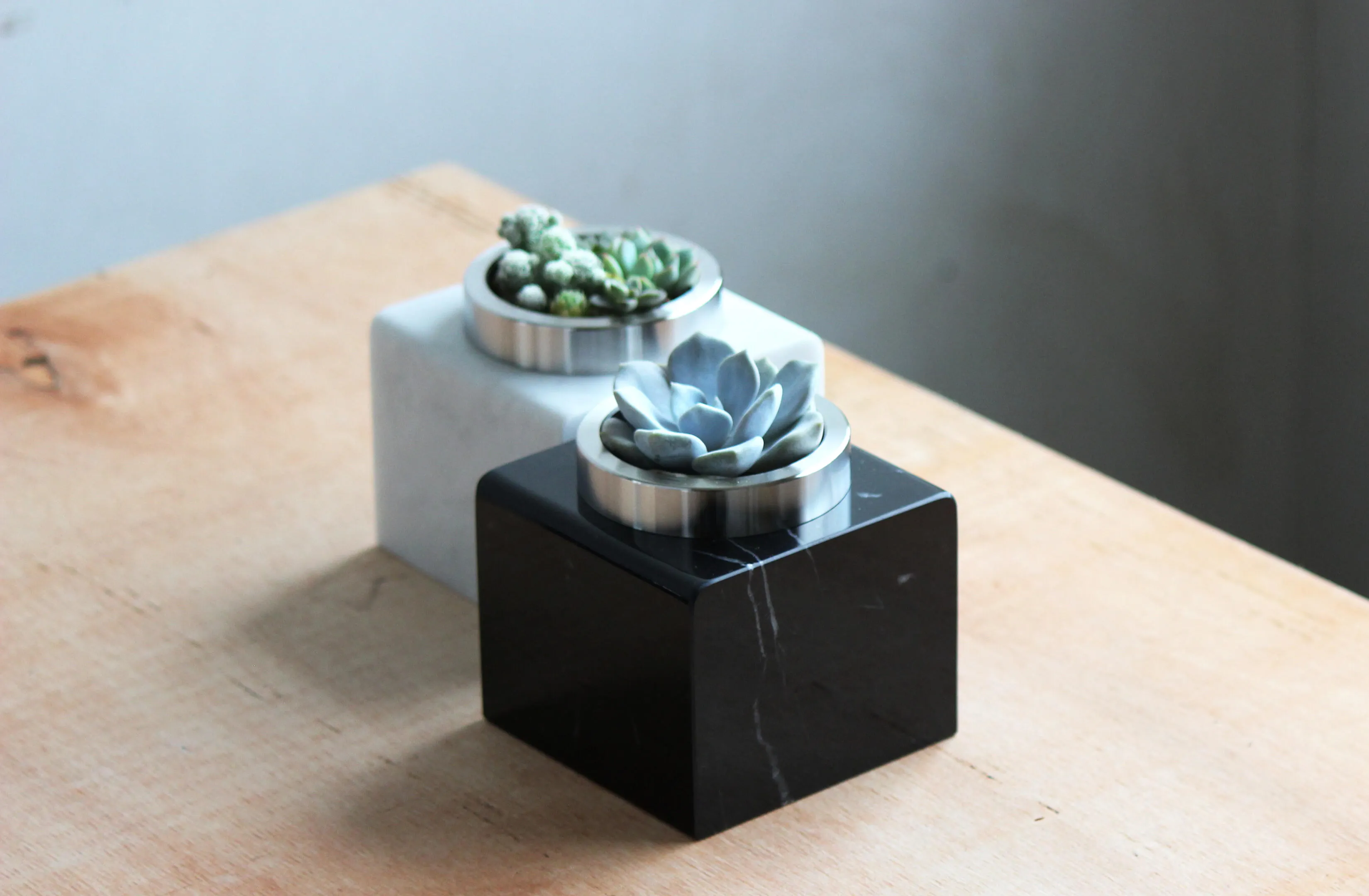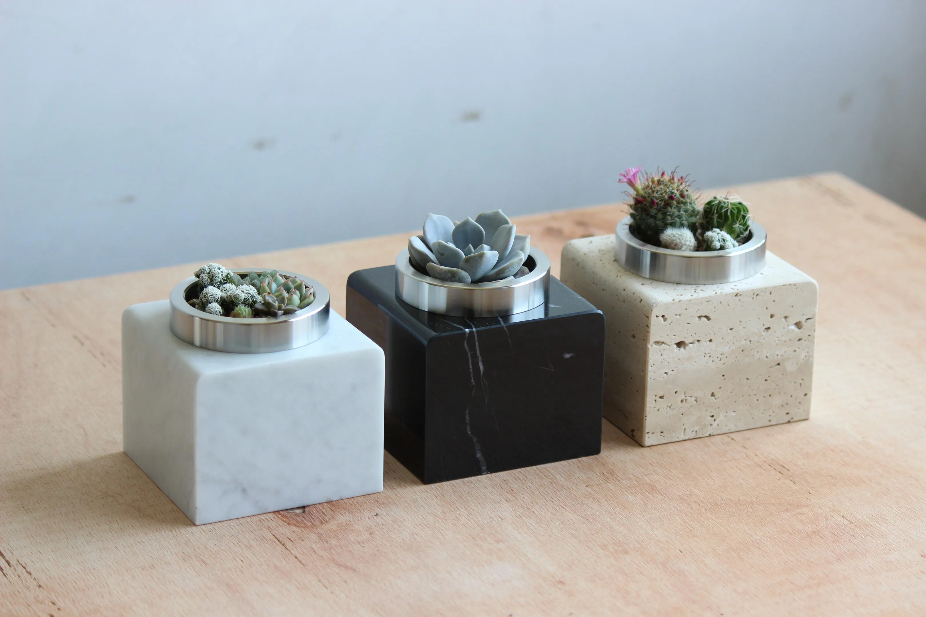「サボテンハウスマーブル」は天然大理石とステンレスを組み合わせた高級感のある上質な植木鉢です。