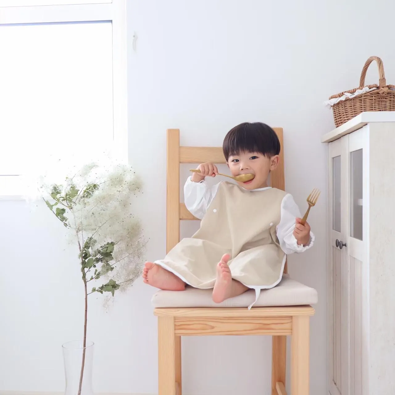 代表商品である「吸盤つき&ロング丈のお食事エプロン」は、子どもの服や床の汚れを防ぎ、後片付けの手間を大幅にカット。これまで1日3回あった“イライラする時間”が、笑顔の食事時間に変わったという声を多数いただいています。