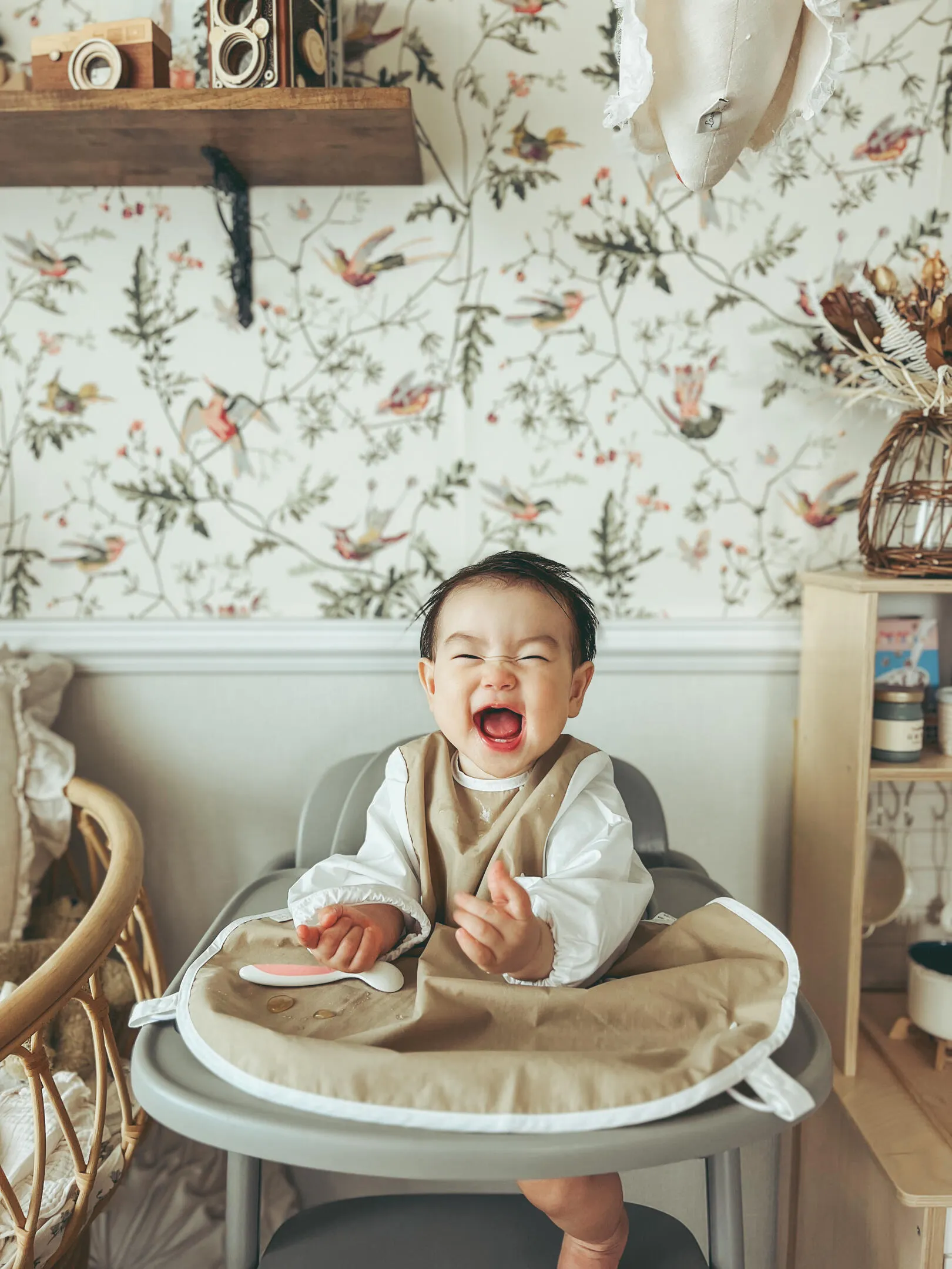 吸盤つき&ロング丈のお食事エプロンを中心に、ママの家事負担を軽減し、親子の笑顔が増えるおしゃれな時短育児グッズを提案する日本製ブランド