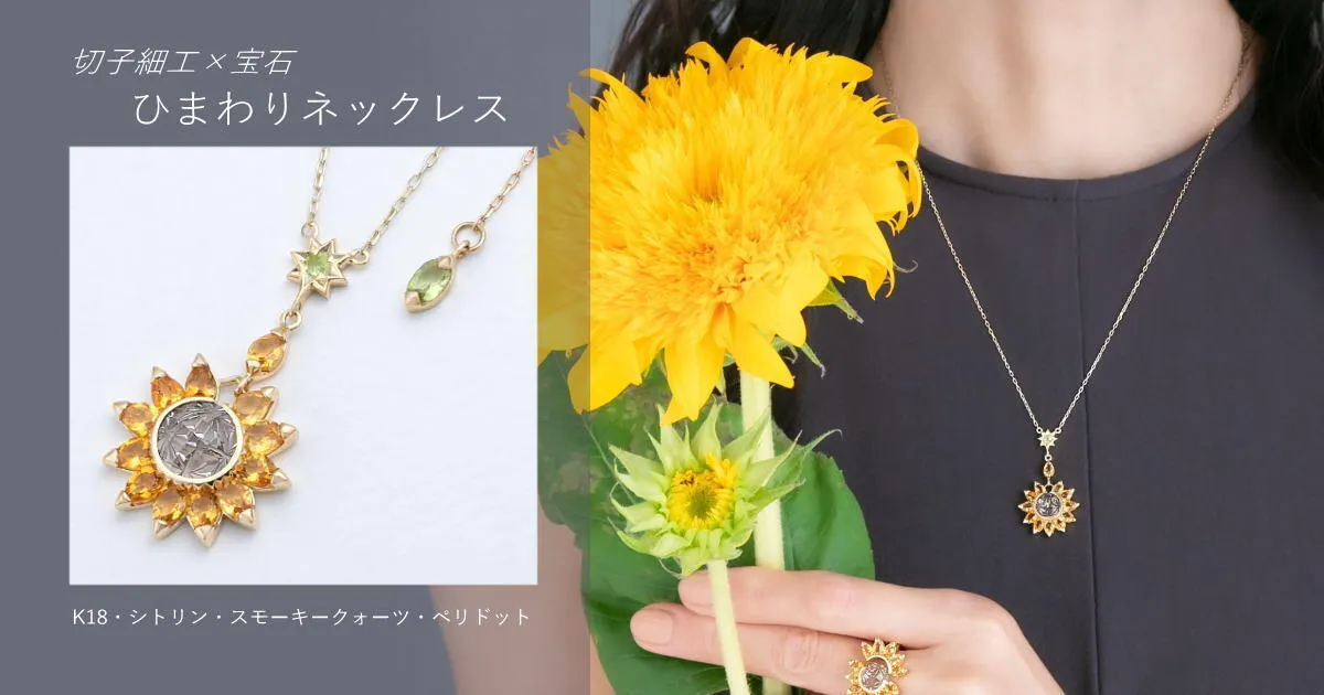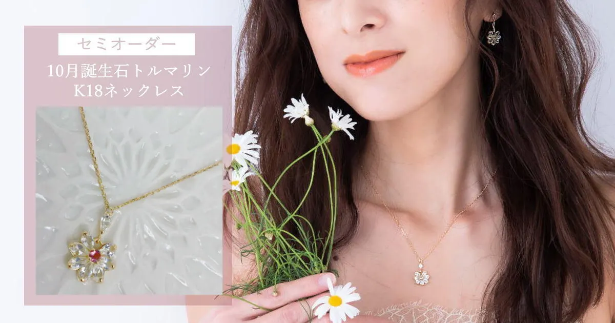 左:セミオーダーネックレス(K18×ホワイトトパーズ×10月誕生石ピンクトルマリン)