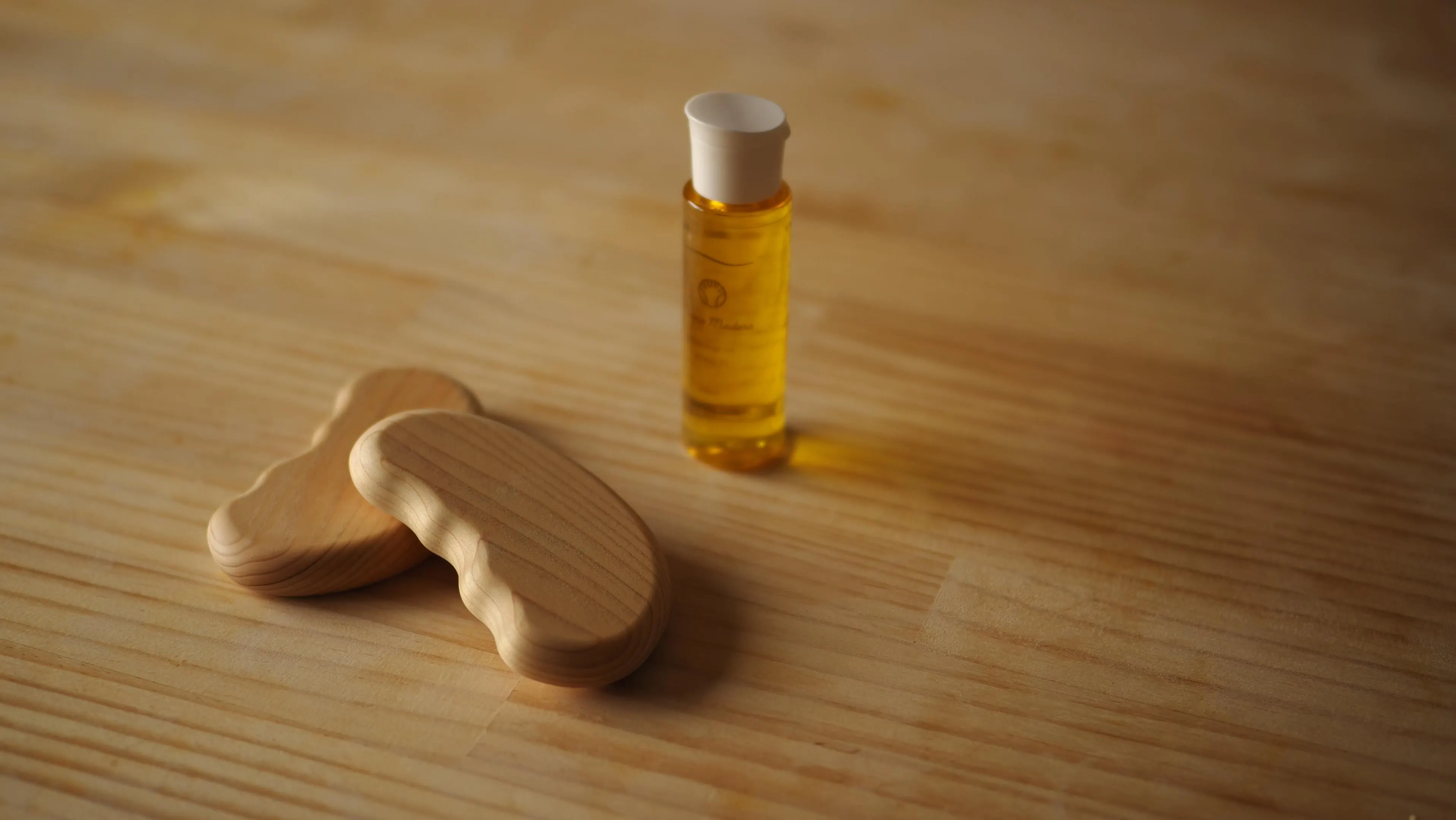 Mano Maderaのツールに使用される素材は、主に再生可能で環境にも人にもやさしい素材である天然木を使用しています。特に塗装などを施さず、マッサージ用のオイルがなじむように無垢のままの木を丁寧に加工しています。樹種には身体に木が馴染む柔らかい木肌で、さらに特有のアロマ効果で香りを持ち合わせ、お風呂でも使えるように水に強い「ひのき」をセレクトしています。