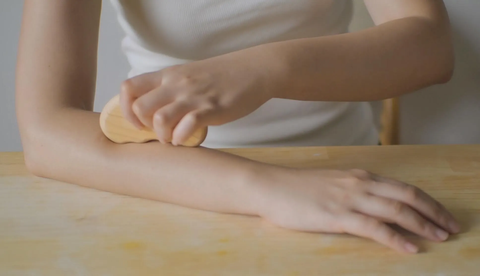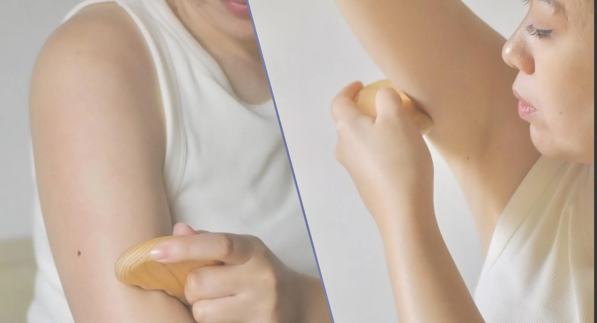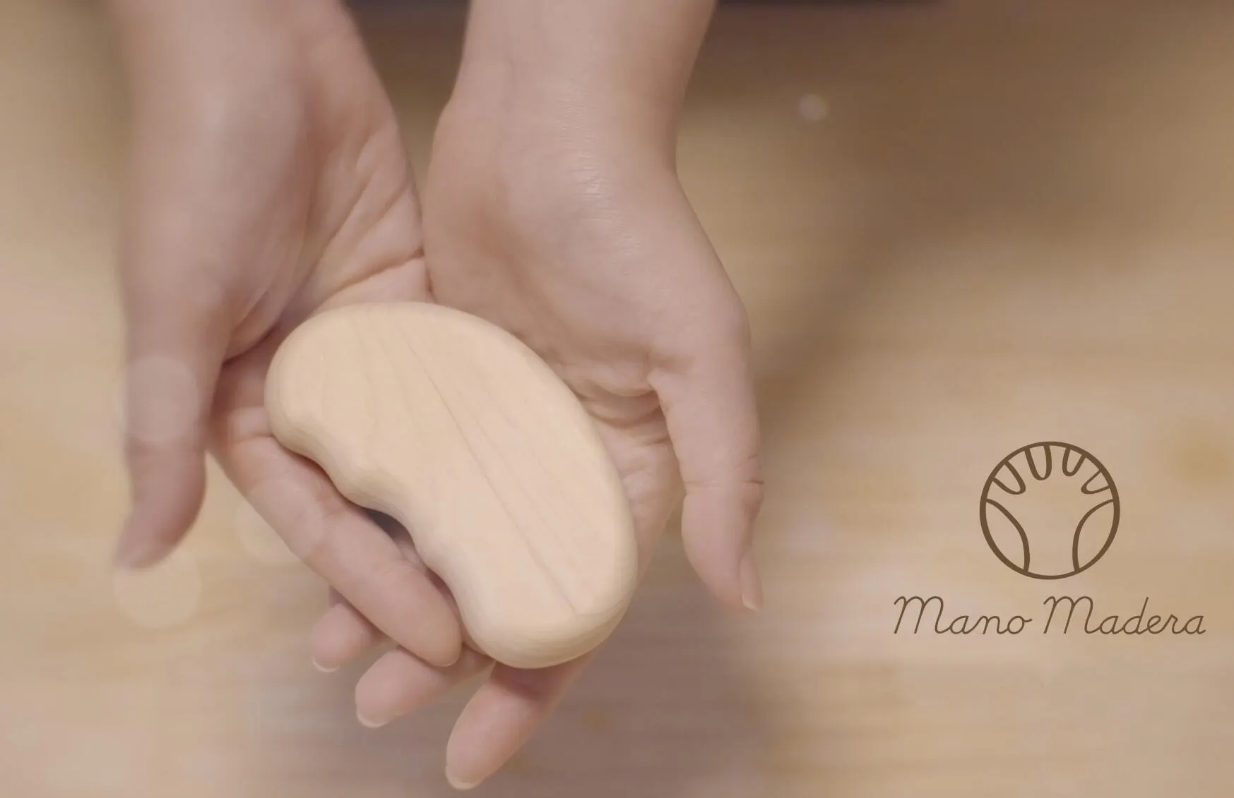 Mano Madera™️の基本的は使い方のポイントは、「すりすり、さすさす、なでなで」とゆっくりとしたスピードで身体を撫でてさすることを意識して使ってみてください。もみほぐす施術とは違い、ツールで身体をゆっくり優しく撫でてさすります。自分の呼吸に合わせて1秒に4~5cm進むぐらいのゆっくりとした速度でツールを動かしましょう。ちょっとした心や身体の変化に気づけるかもしれません。強く押し付けず、優しく身体を撫でるのが基本です。
