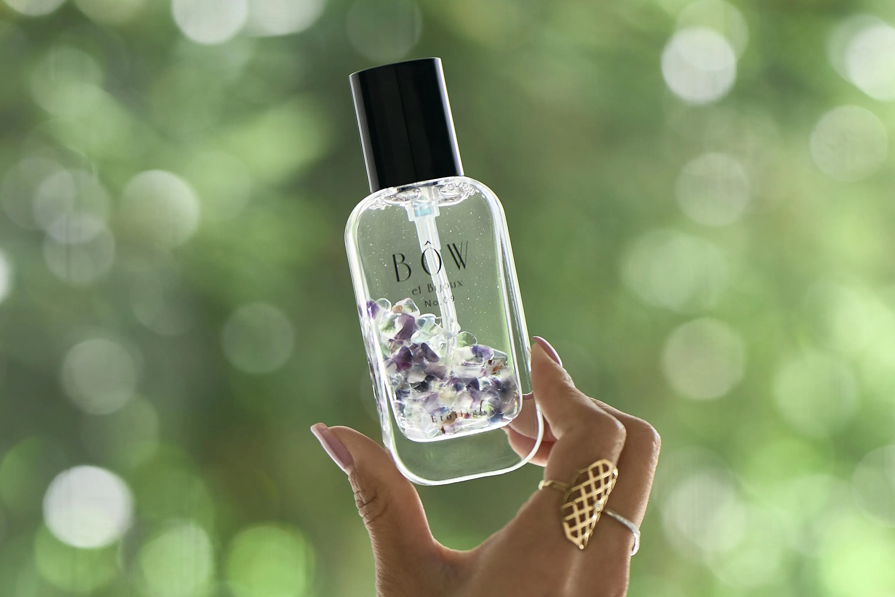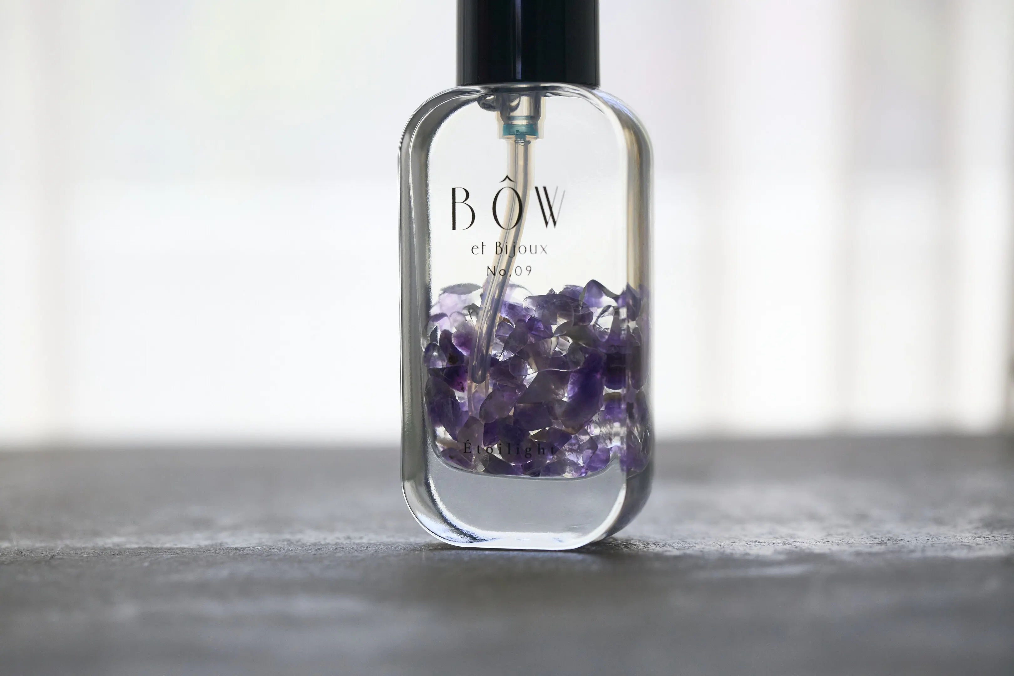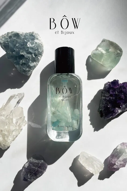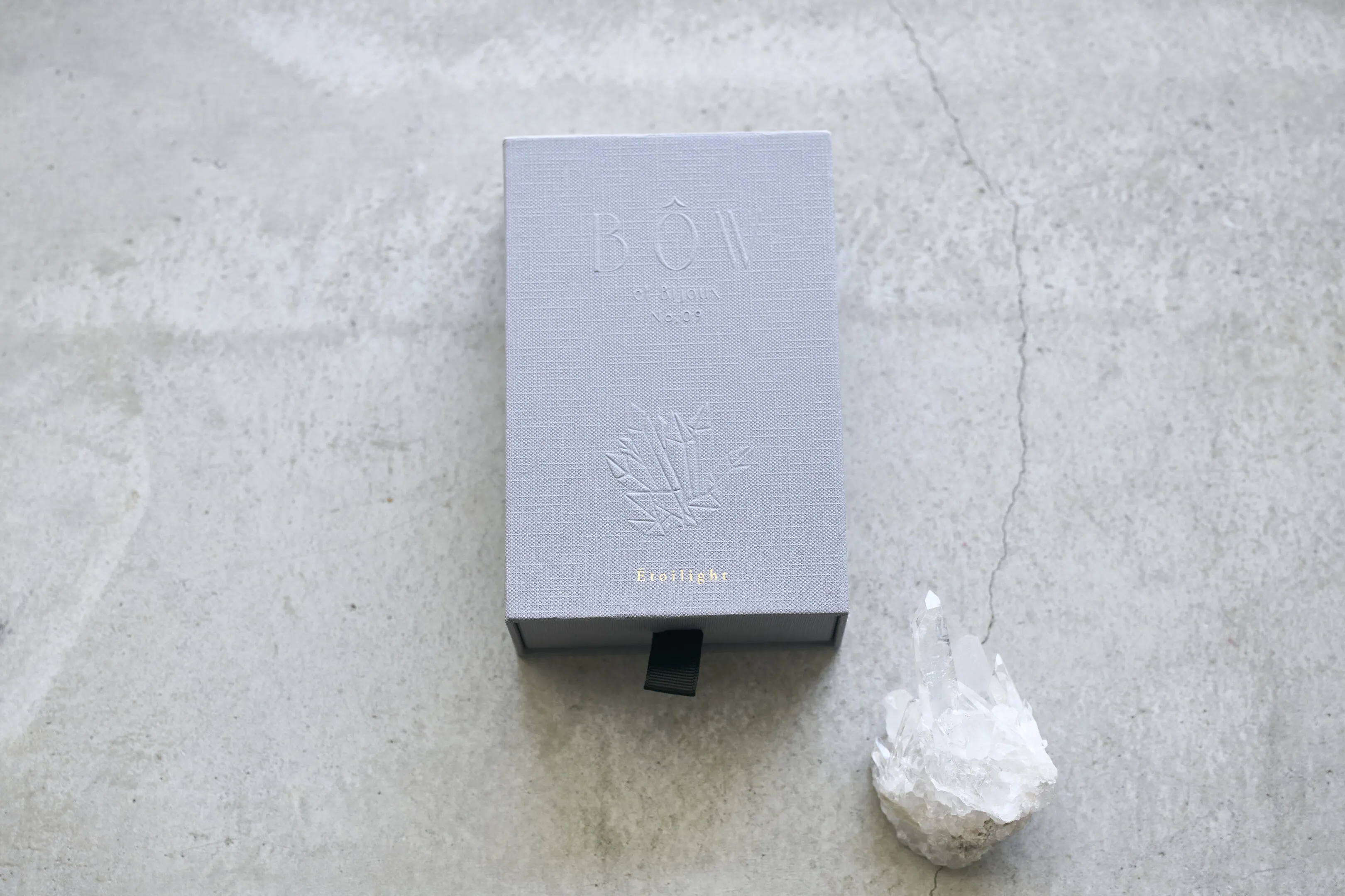 そんな想いでお作りしたBÔW et Bijouxのファーストアイテムは、ジュエリーブランド発信ならではの審美眼で厳選された天然石を贅沢にエッセンシャルオイルに漬け込んだ新しいスタイルの "