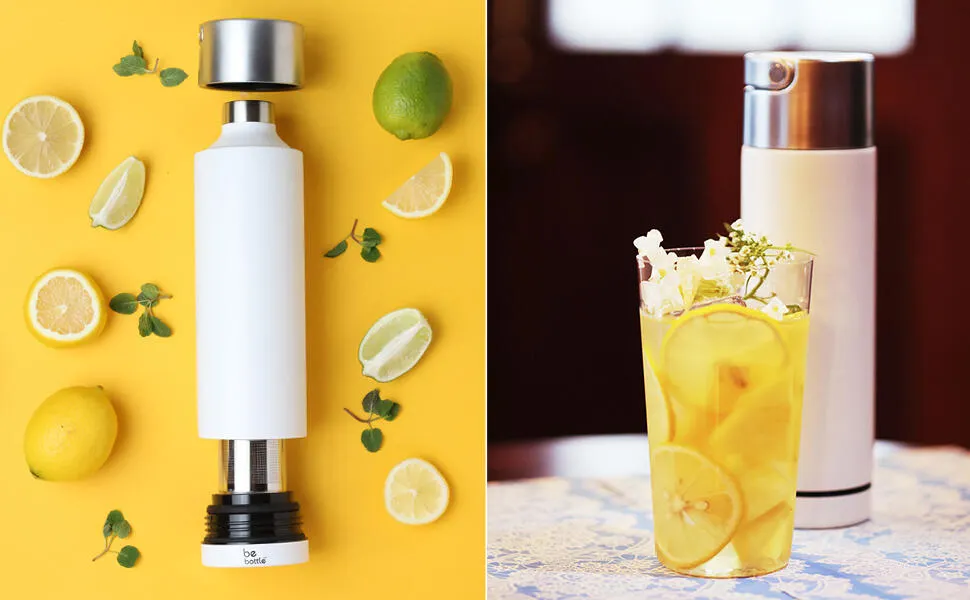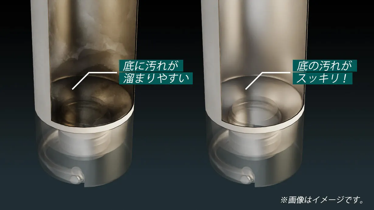 ・真空二重構造のボトルには通常、ボトルの底に真空をふさぐ穴があります。小さい鉛(毒性をもつ)を使いますが、「Be Bottle」は底に鉛の穴がありません。代わりに20g(500円玉3枚)の金属のカバーと、フィルターをつけています。少し重くなりますが、しっかりとした作りです。その特性ゆえ、アメリカと中国で特許取得しました!