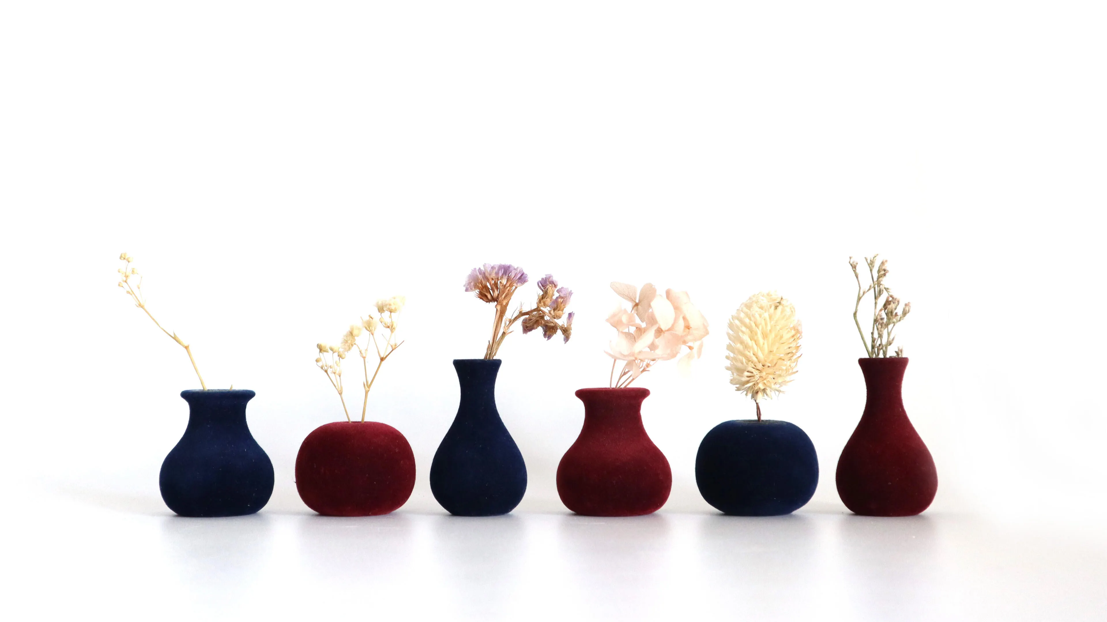 思わず触れてしまう特殊な手触りをもった小さな花瓶です。