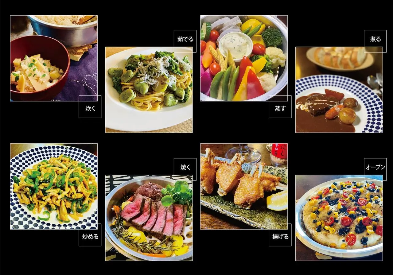 ※Multi Use 1台8役 炊く・煮る・蒸す・茹でる・揚げる・炒める・焼く・オーブン調理が可能です。