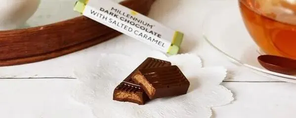 濃厚なダークチョコレートと、甘さと塩気が絶妙に調和したキャラメルフィリングが特徴。個包装のスティックタイプで、仕事の合間や移動中にも手軽に楽しめる点が好評です。口に入れた瞬間、カカオの深い香りとキャラメルのコクが広がり、余韻まで洗練された味わいが続きます。