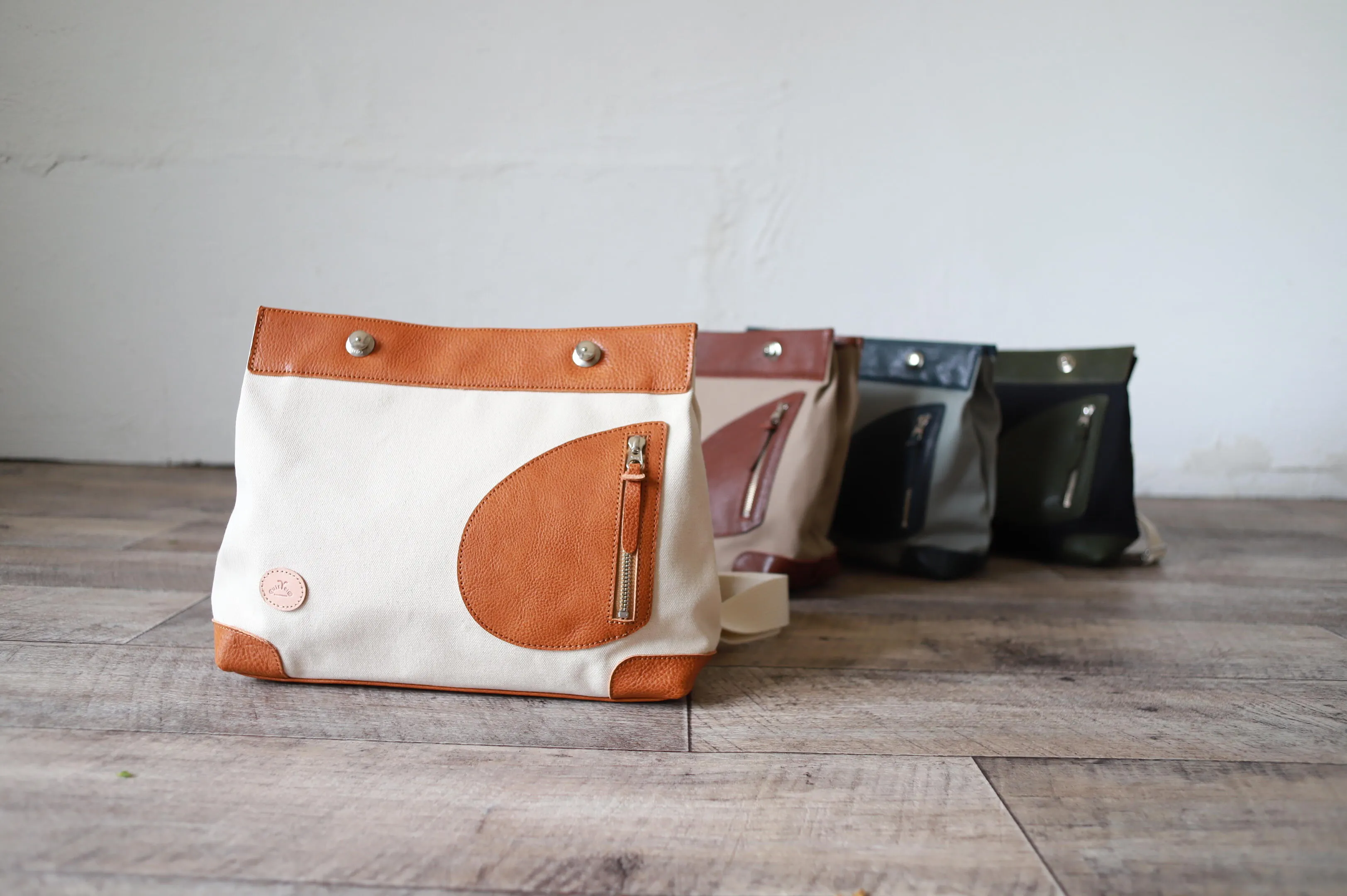 ガバッと口が開く郵便屋さんのカバンをイメージしたショルダーバッグ