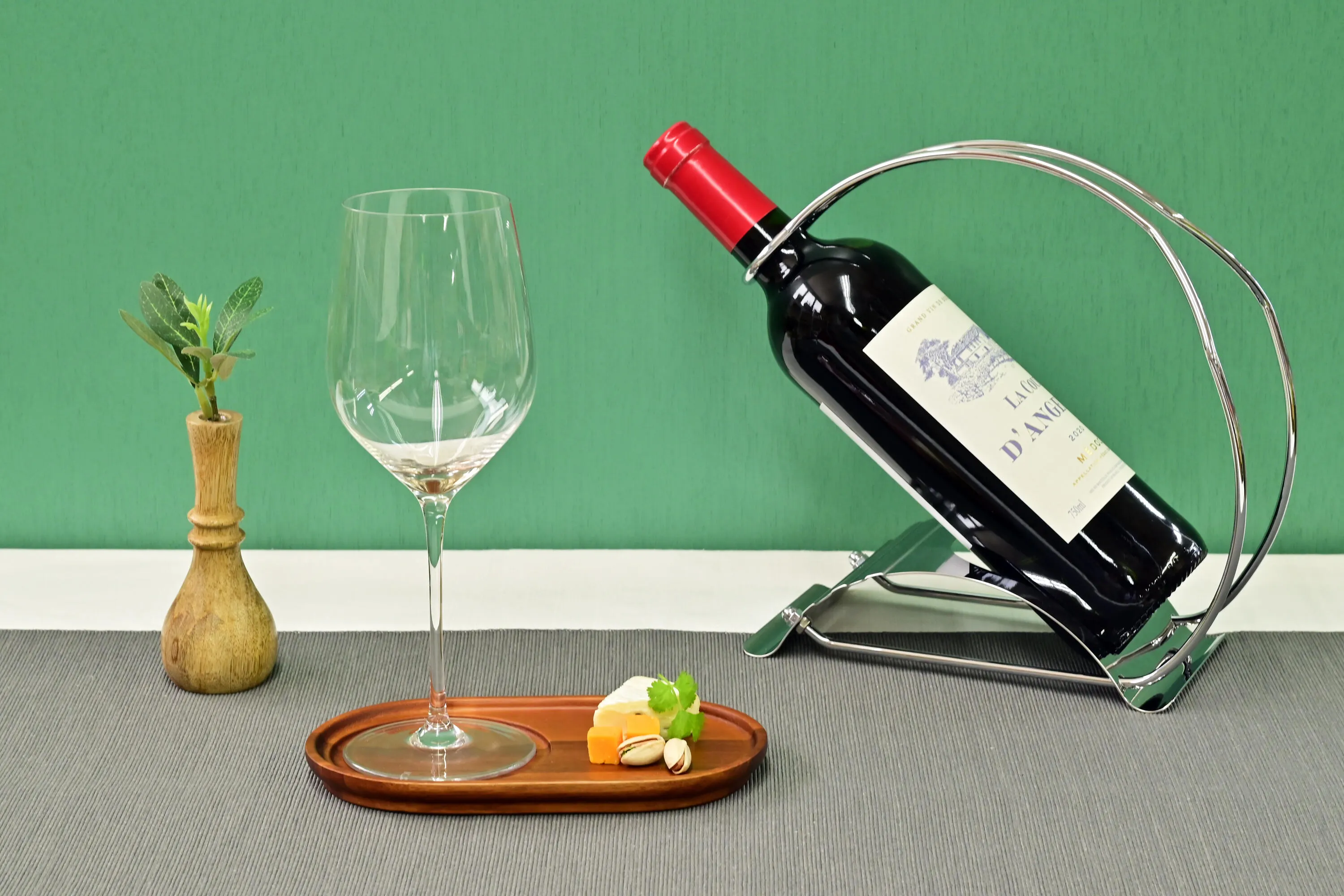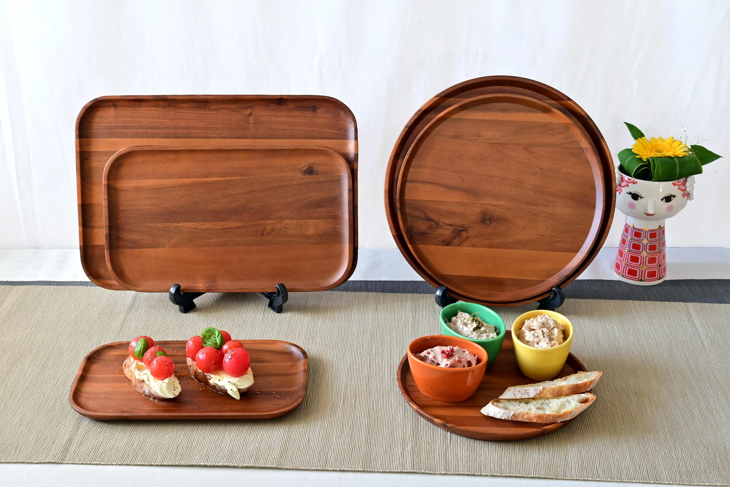 飲み物と小さなお菓子・おつまみを一緒に乗せられる、アカシア材のカフェプレート。和洋どちらのシチュエーションでも映えます。重ねて収納できるので、場所も取らず便利です。