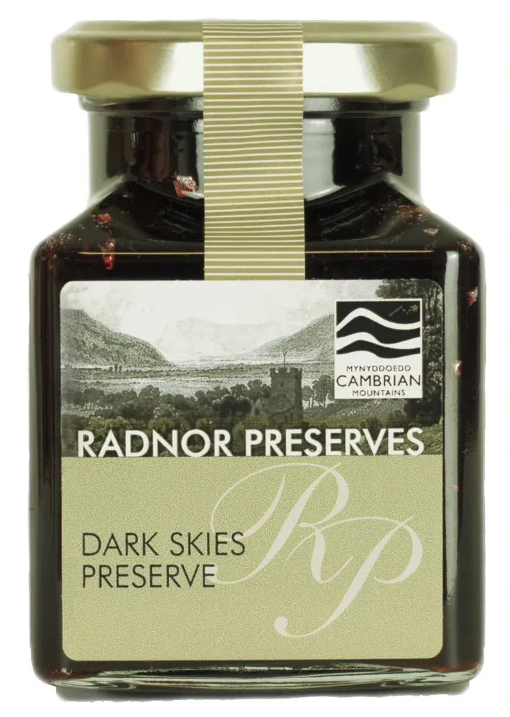 ウェールズ中部の星が輝く程美しい暗い空を讃えています。チャックルベリー (ブラックカラント、グズベリー、レッドカラントの交配種) からこの程よい酸味のジャムが生まれます。材料であるウェールズ産のジンに入っている銀粉は、銀河の星がちりばめられた星雲を映し出しているような美しさです。