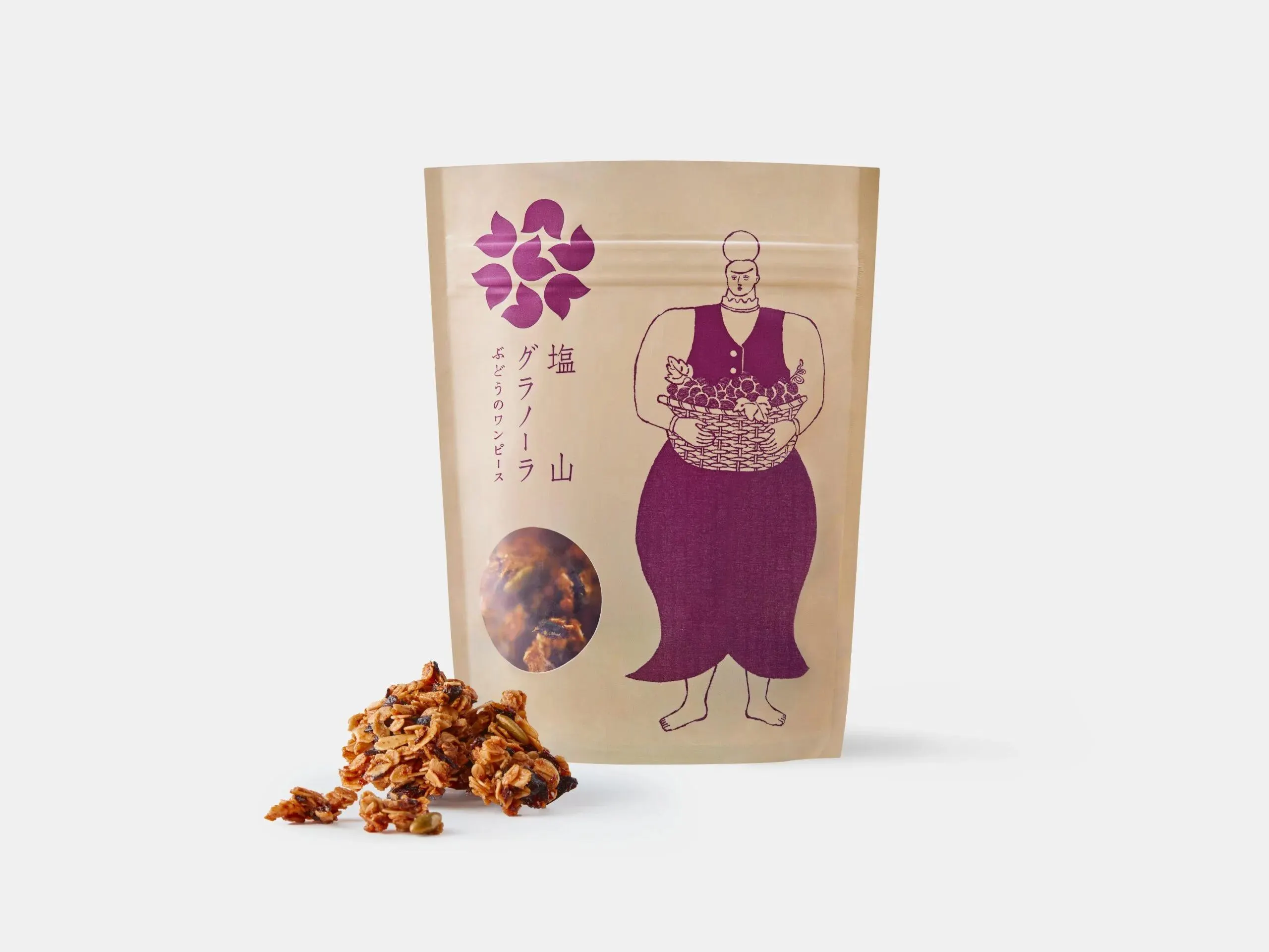 これにオーツ麦やアーモンドを混ぜ、香ばしく焼き上げて仕上げたのが「塩山グラノーラ」です。