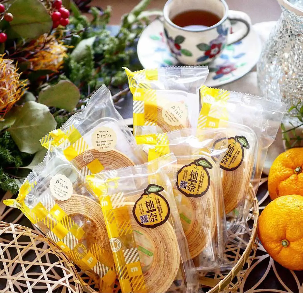 柑橘系でバウムクーヘンの膨らみが悪く何度も何度も試作をし、しっとりふんわりのバウムクーヘンが出来ました。