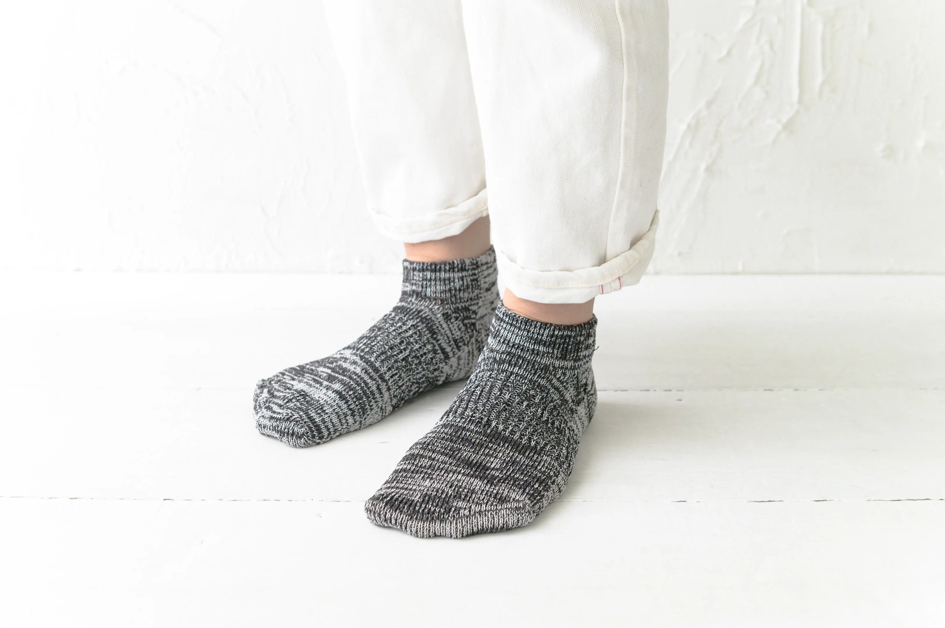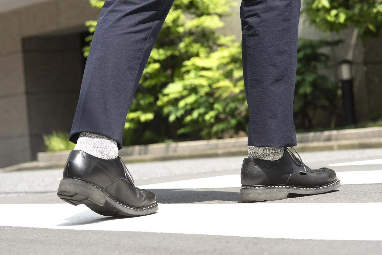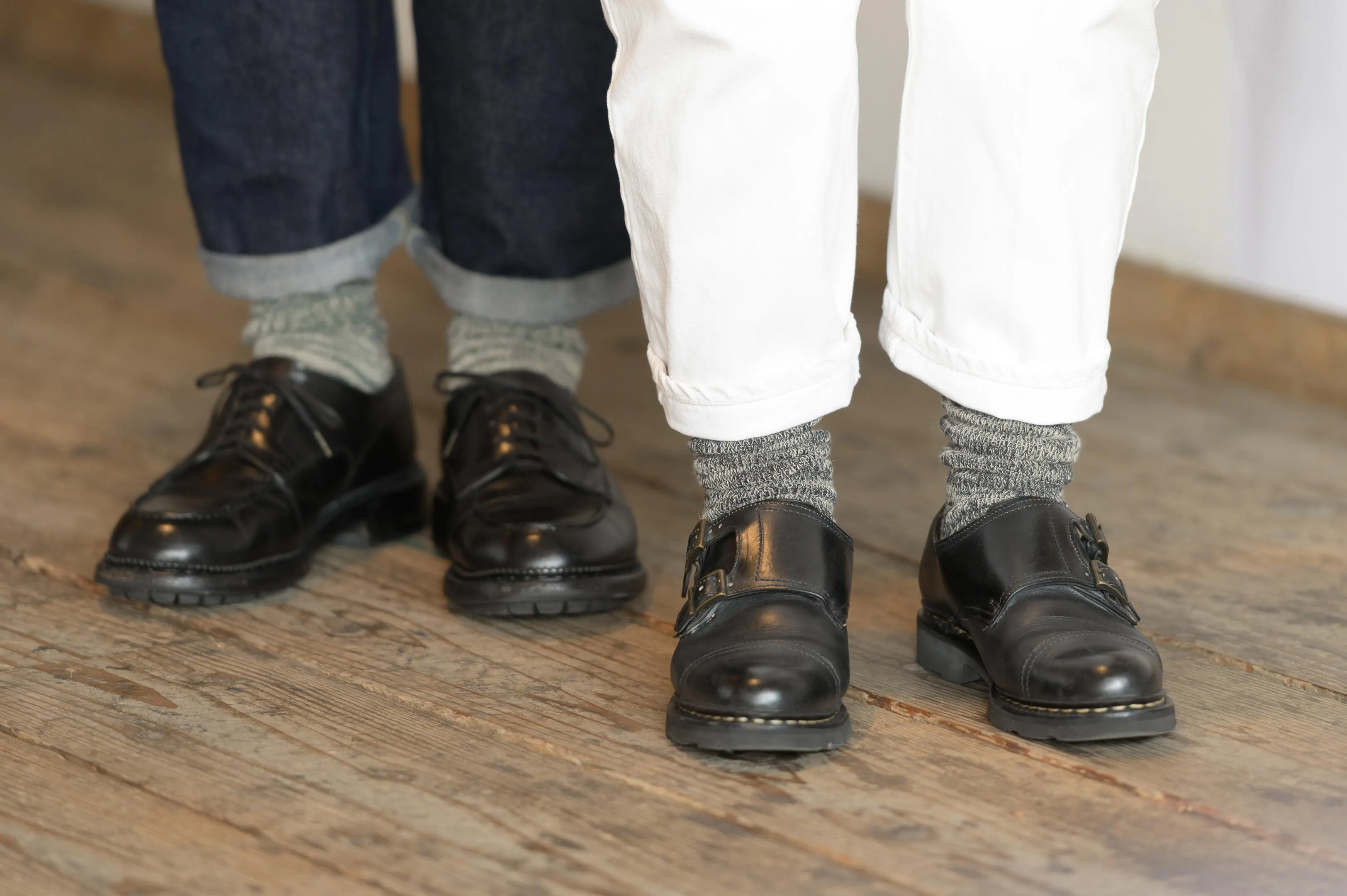 くるぶし丈の長さで、スニーカーにも革靴にも重宝いたします。