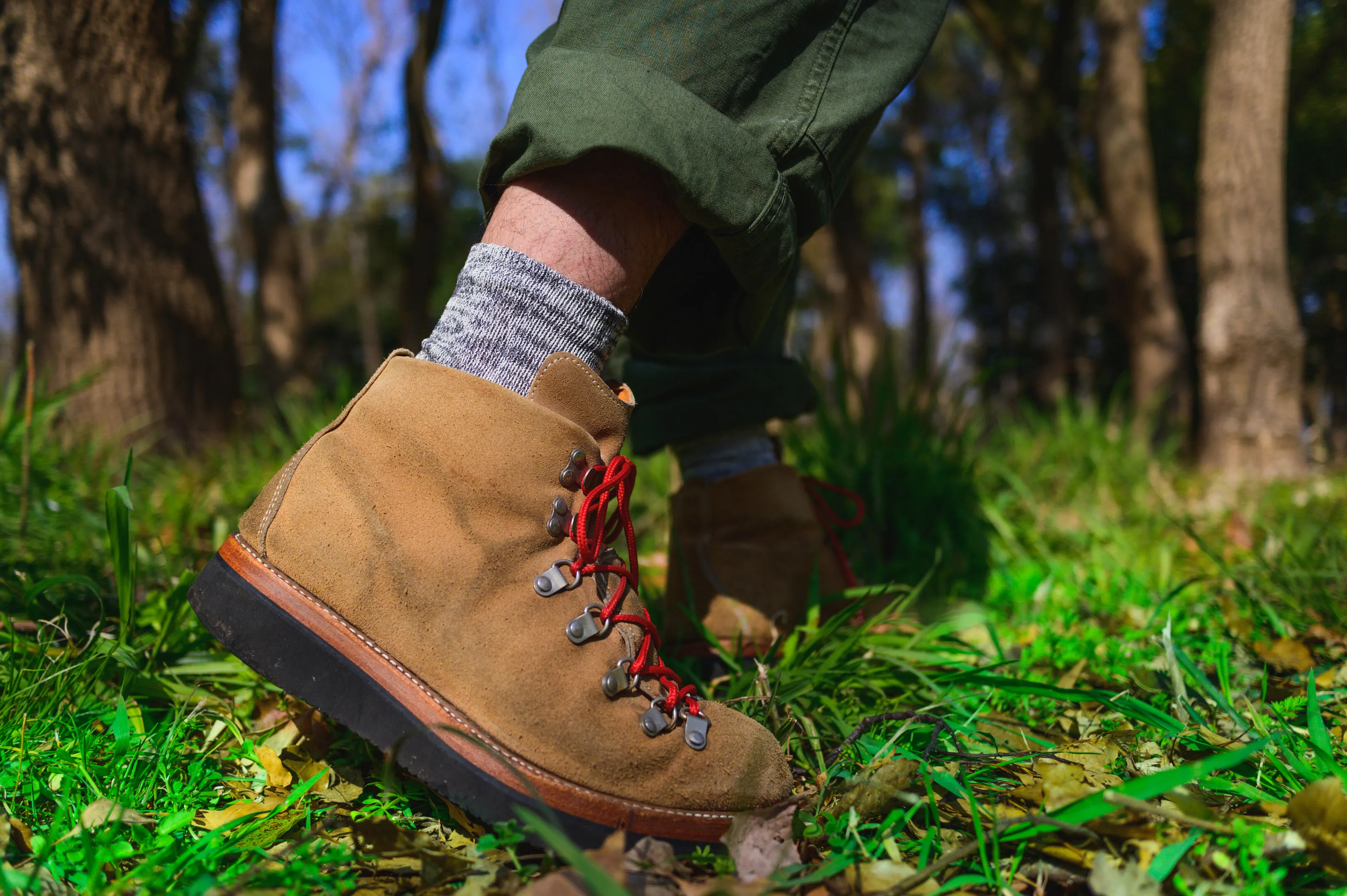 ショート丈よりも6cm長いタイプで、ブーツにも合わせられるようにしています。6インチ丈のブーツで、少し履き口が見えるくらいの丈の長さです。私はよくブーツを履くのでこの長さを一番愛用しています。
