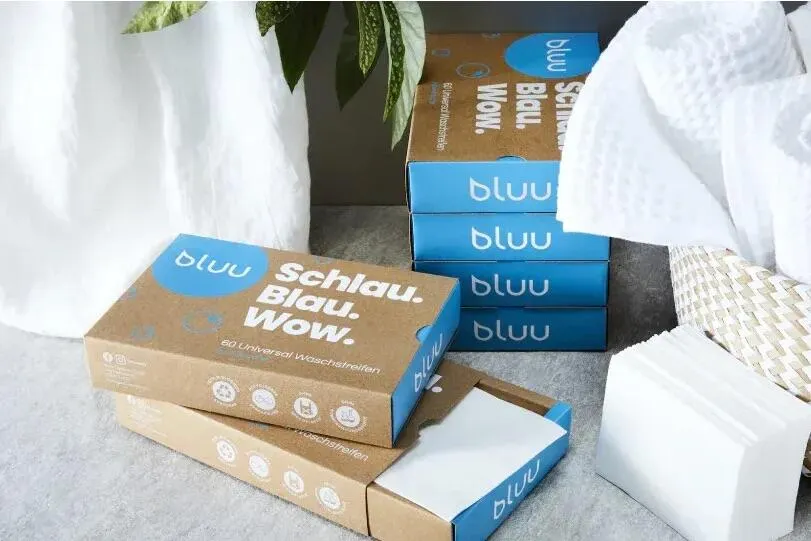 スイス・ドイツの1700以上の店舗で販売される、人気のシート洗剤「bluu(ブルー)」。 肌にも環境にもやさしい、新しい洗たく習慣を日本へ。