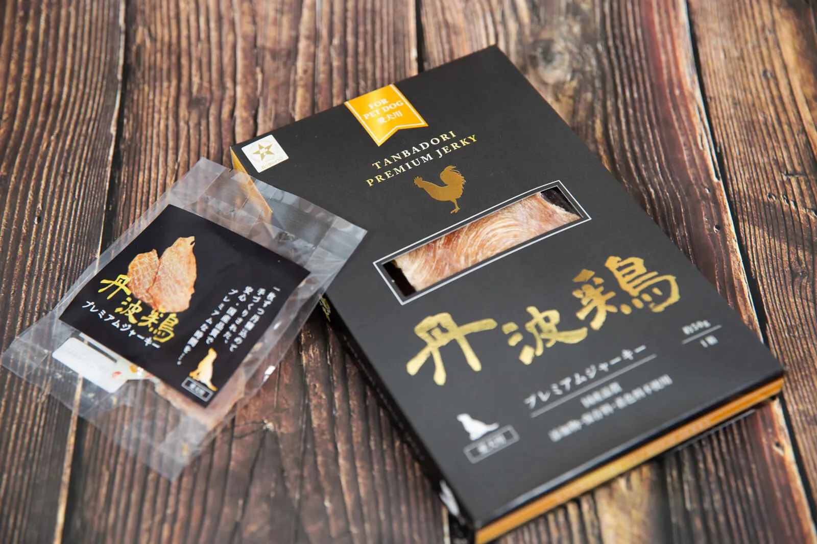 添加物・保存料・着色料不使用で一枚づつ丹精込めて手づくりされた国産品質で愛犬の為の丹波鶏プレミアムジャーキーでプレミアムな時間をお楽しみ頂けます。