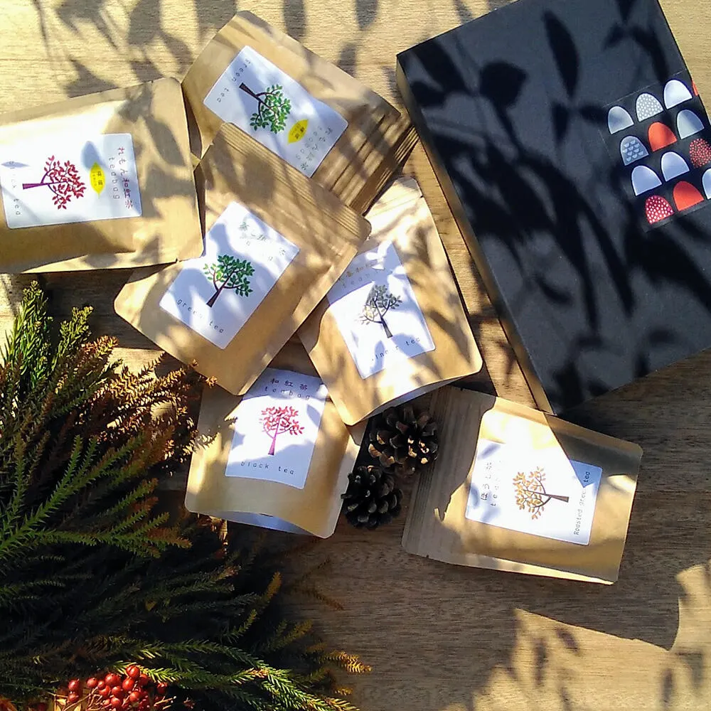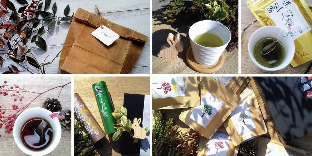イベントや用途ごとに多くの種類を取り揃え、中身のお茶も煎茶・ほうじ茶・和紅茶など、季節に合わせて変わります。