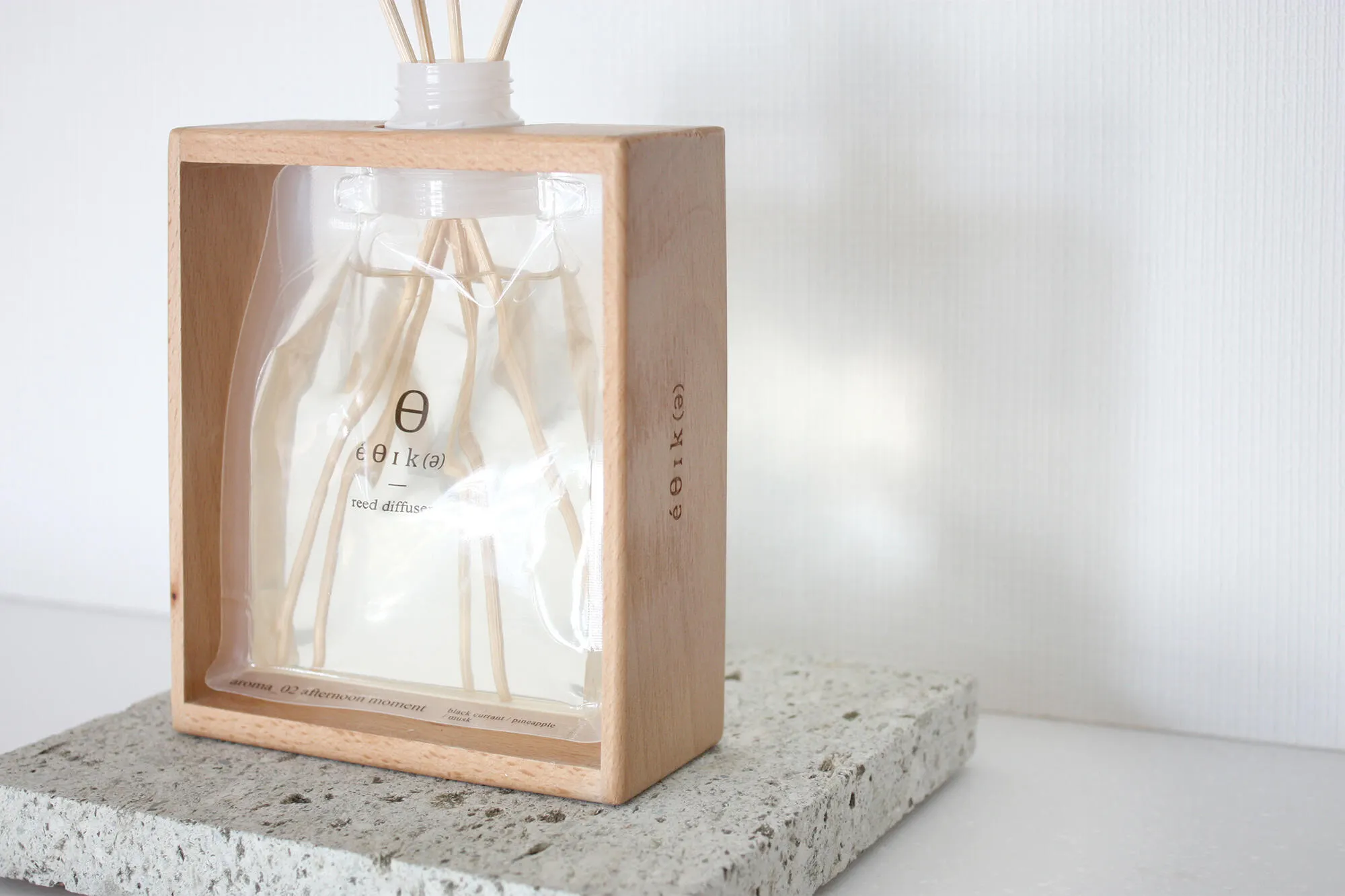 リフィルをそのままスタンドにセットして使うルームフレグランス éθIk(ə)・エシカ。 香りにもこだわってお作りした、新しい形のブランドです。