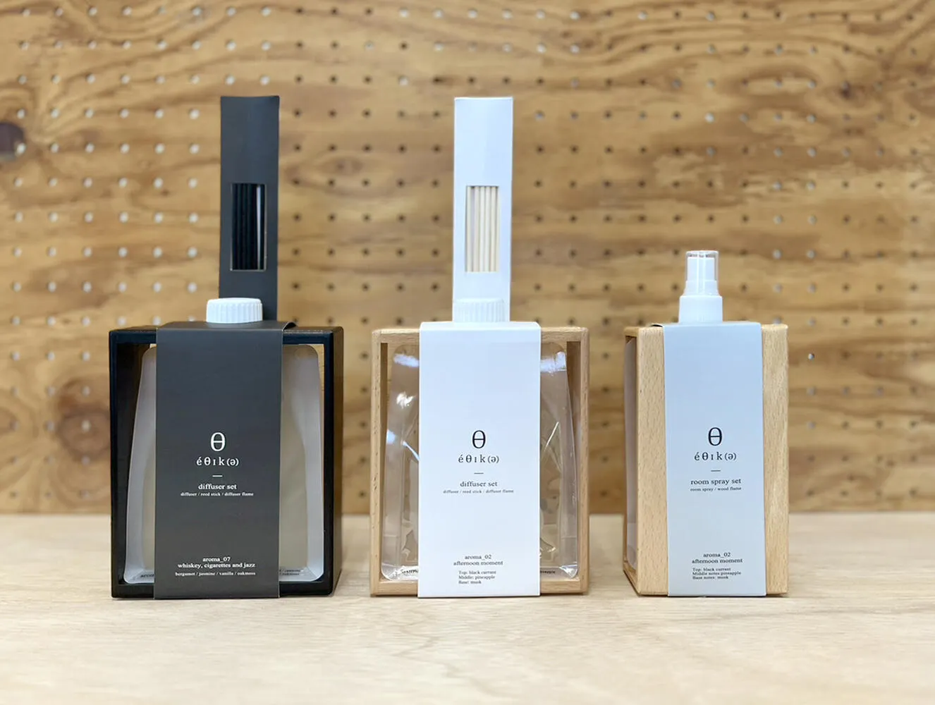 この詰め替えの際のストレスを軽減し、排出されるゴミを出来る限り小さく抑えたリードディフューザーが出来ないものかと始まったブランドが 〈éθIk(ə)・エシカ〉 です。
