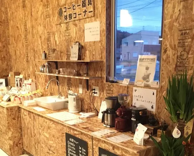 店内では常時10種類ほどのコーヒーを無料で試飲できるようにしています。お客様に自分の好みに合ったコーヒーを見つけていただくことが、私たちの喜びです。また、コーヒー器具の体験コーナーも設け、豆を挽いてみたり、コーヒーポットの注ぎ具合を確かめられるようにしています。