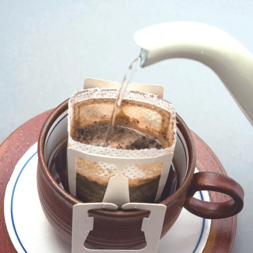 一杯分ずつの粉入りフィルターをカップに載せてお湯を注ぐだけで、新鮮なコーヒーが手軽に楽しめるドリップバッグ仕様。職場やオフィスのウォーターサーバーにも対応し、保存も便利です。