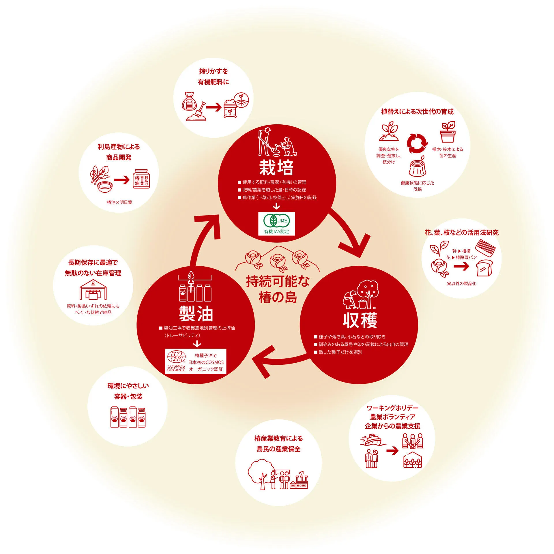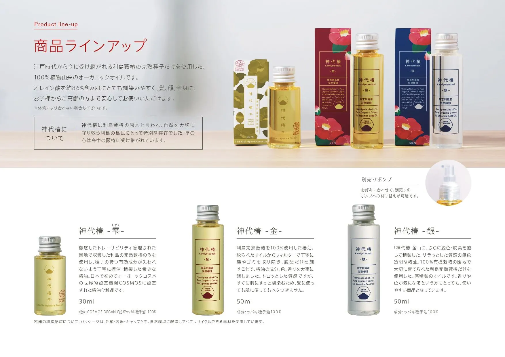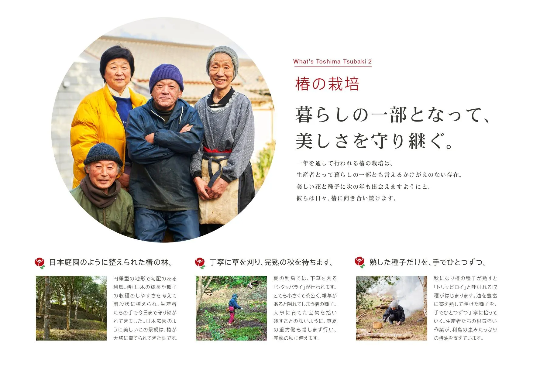 最後に、「利島」の椿油の品質が認められ、国内外の多くの化粧品ブランドの製品の重要な原料としてご採用いただいております。