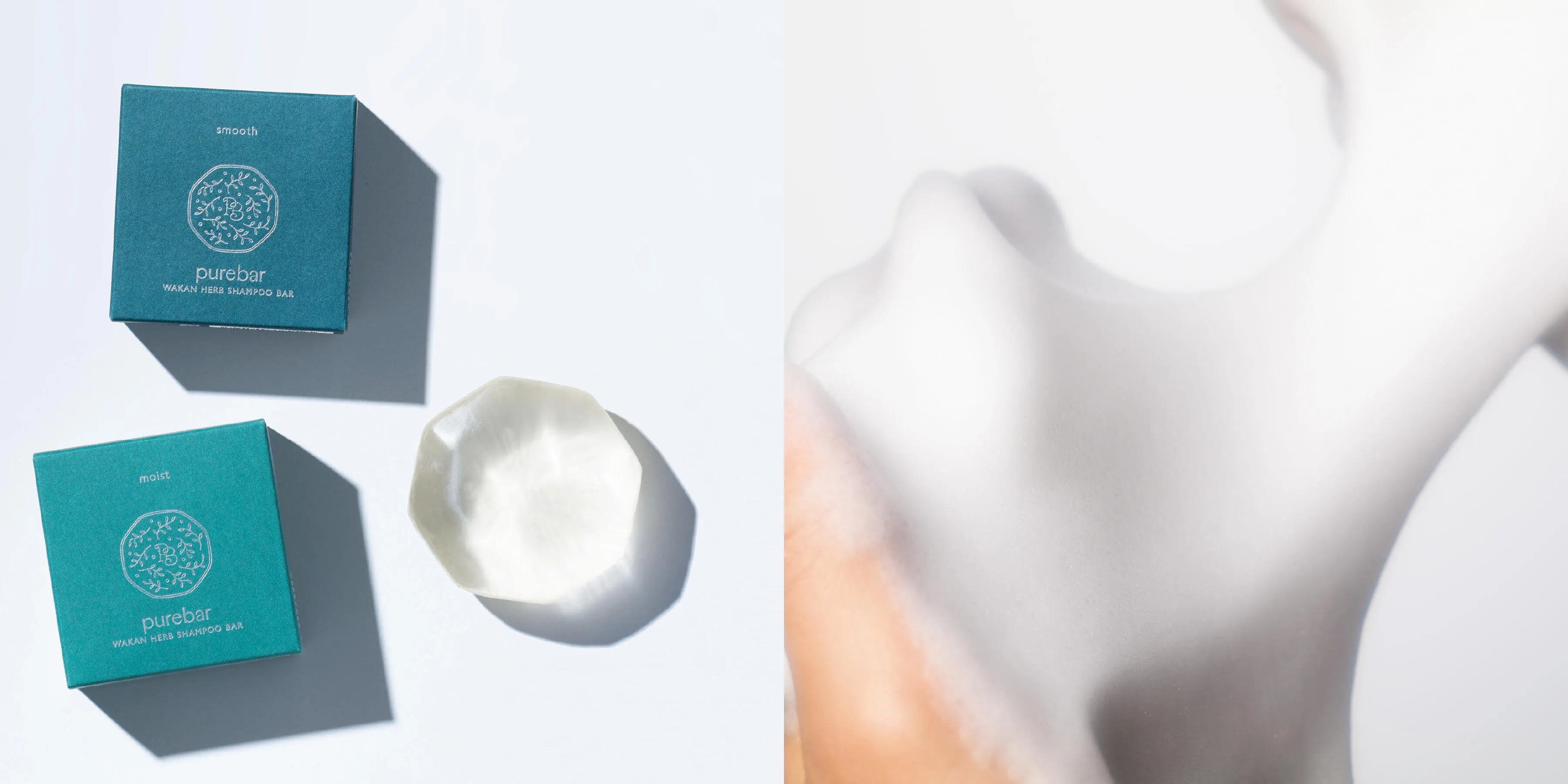 purebar〈ピュアバー〉和漢ハーブシャンプーバーは、純度-髪と地肌に良いものはなるべく多く、不要なものは徹底的に排除-にこだわったシャンプーバーです。固形化することで水分量を13~15%まで大幅に減らし、美容成分の濃度を高めることでコンディショナー不要の仕上がりを実現しています。