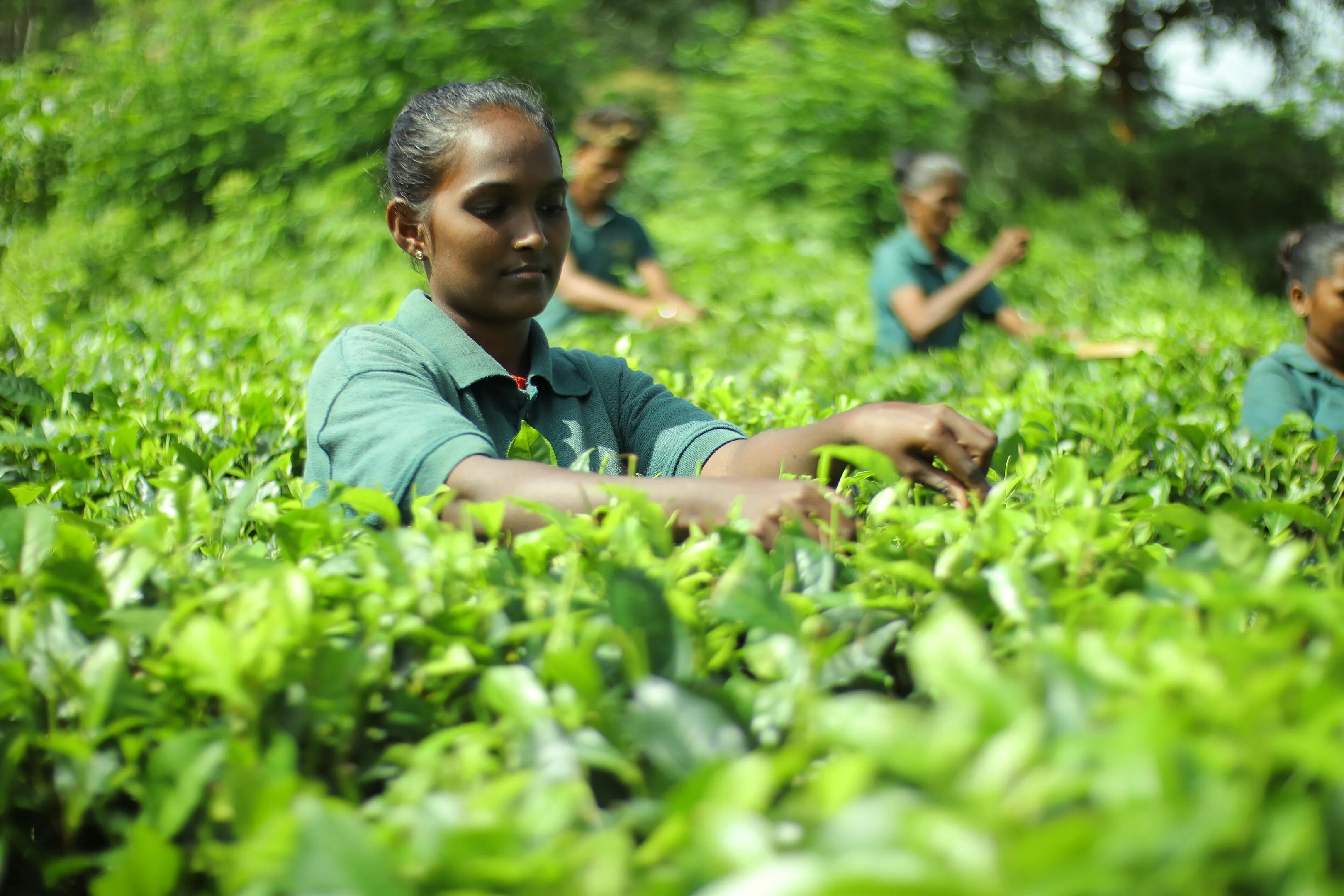 スリランカの山間部で、朝もやの中、丁寧に茶葉を摘む女性たちの手の温もり。