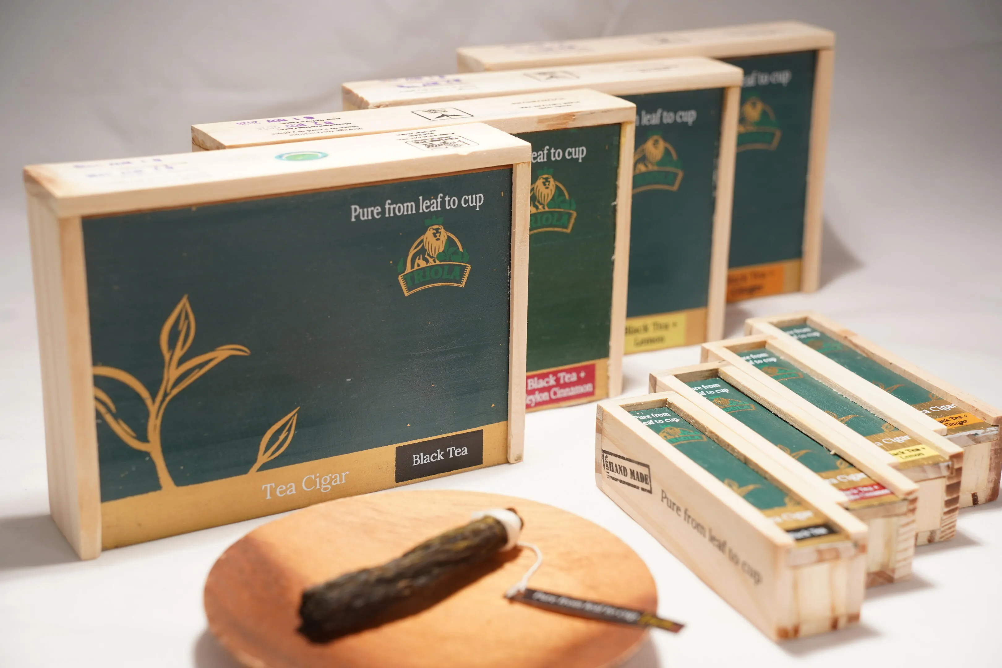 Tea Cigar(ティーシガー)は木箱に入っており、オシャレなギフト使いとしても好評です。木箱は環境に考慮し、敢えて建築物等に用いた端材をしております。