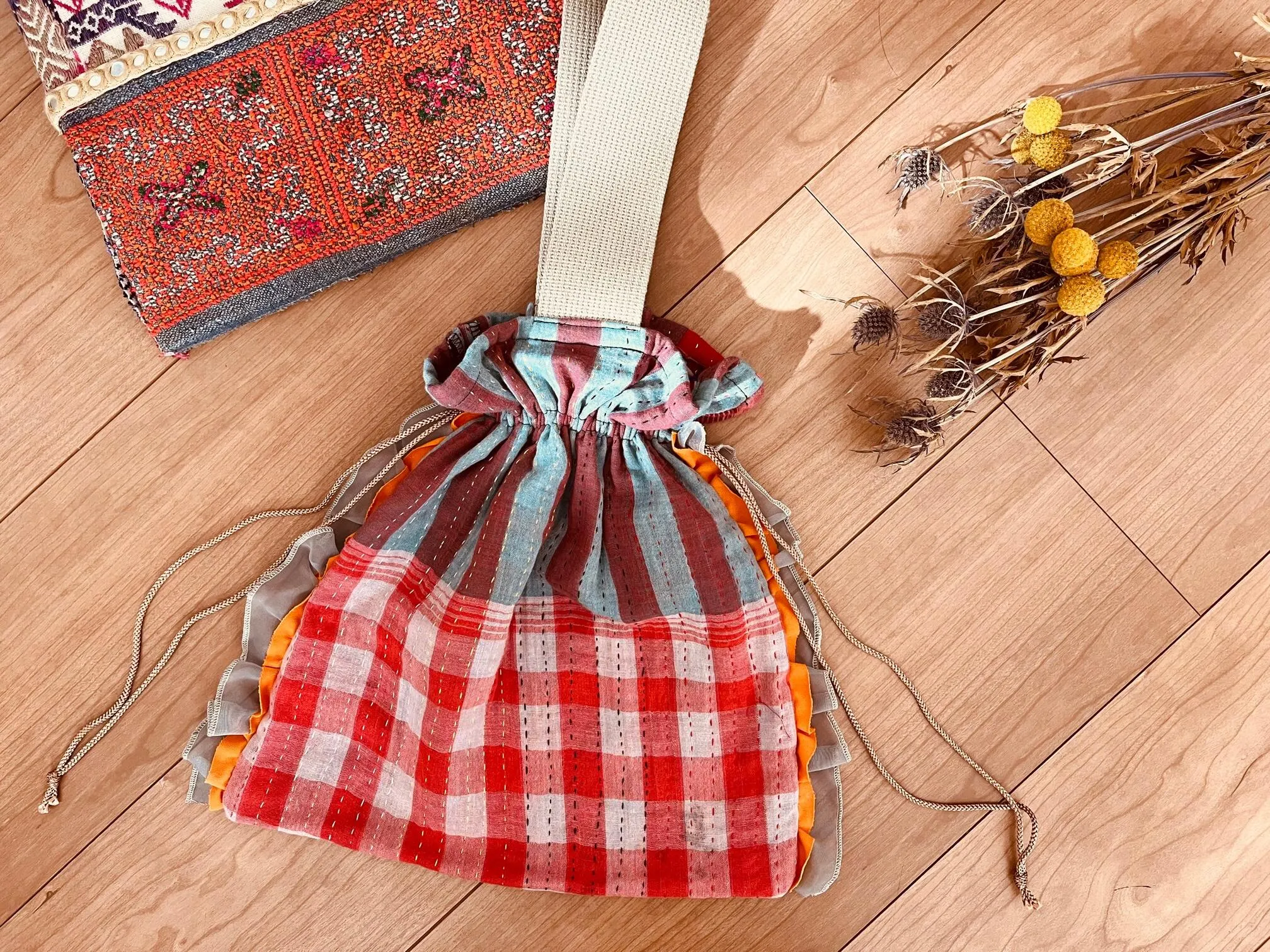 ”誰もが手に取りやすい”をコンセプトの一つとしているので、エスニック色が強くなりすぎない様なデザインと、カンタの魅力を活かした装飾や生地の組合せ等を意識して制作しています。