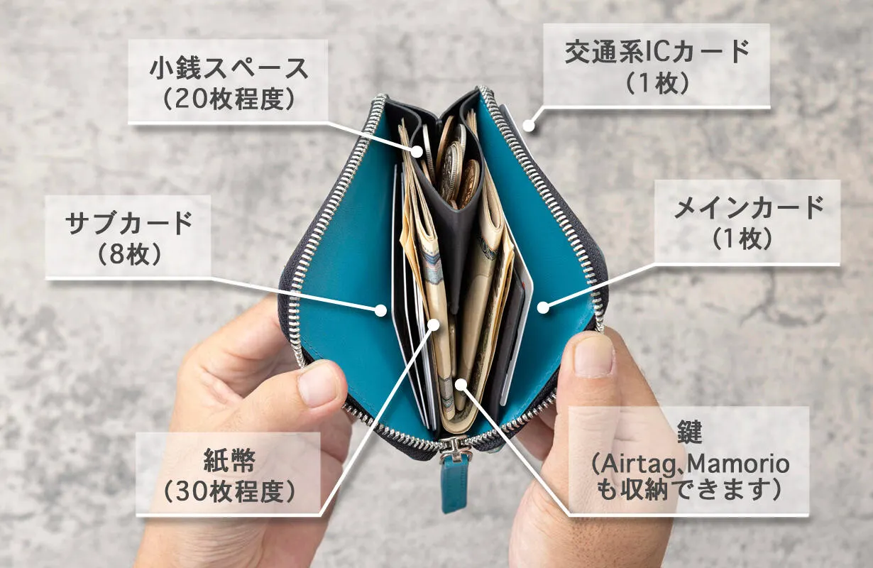 例えば「紙幣がファスナーに噛んでしまう」「カードが見えづらい」「小銭入れがやたら深くて見づらい」などです。そこでベンチマークしていた最小サイズの他社製品より6mmだけ大きくすることで使いやすく、かつコンパクトな財布に仕上げました。