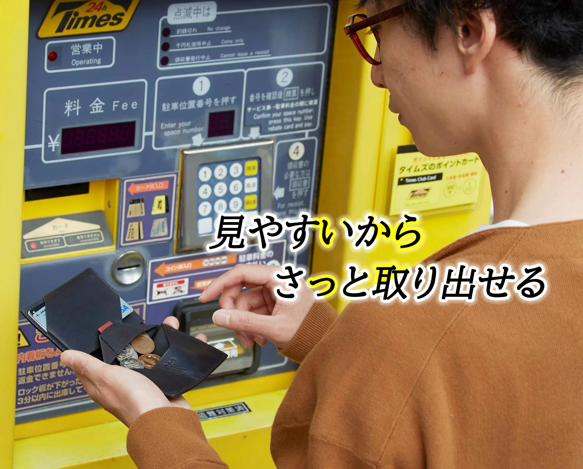ホックはボックスタイプの小銭入れのように面で確認できるため視認性が優れていますが、ホックによる厚みがどうしても生まれてしまいます。