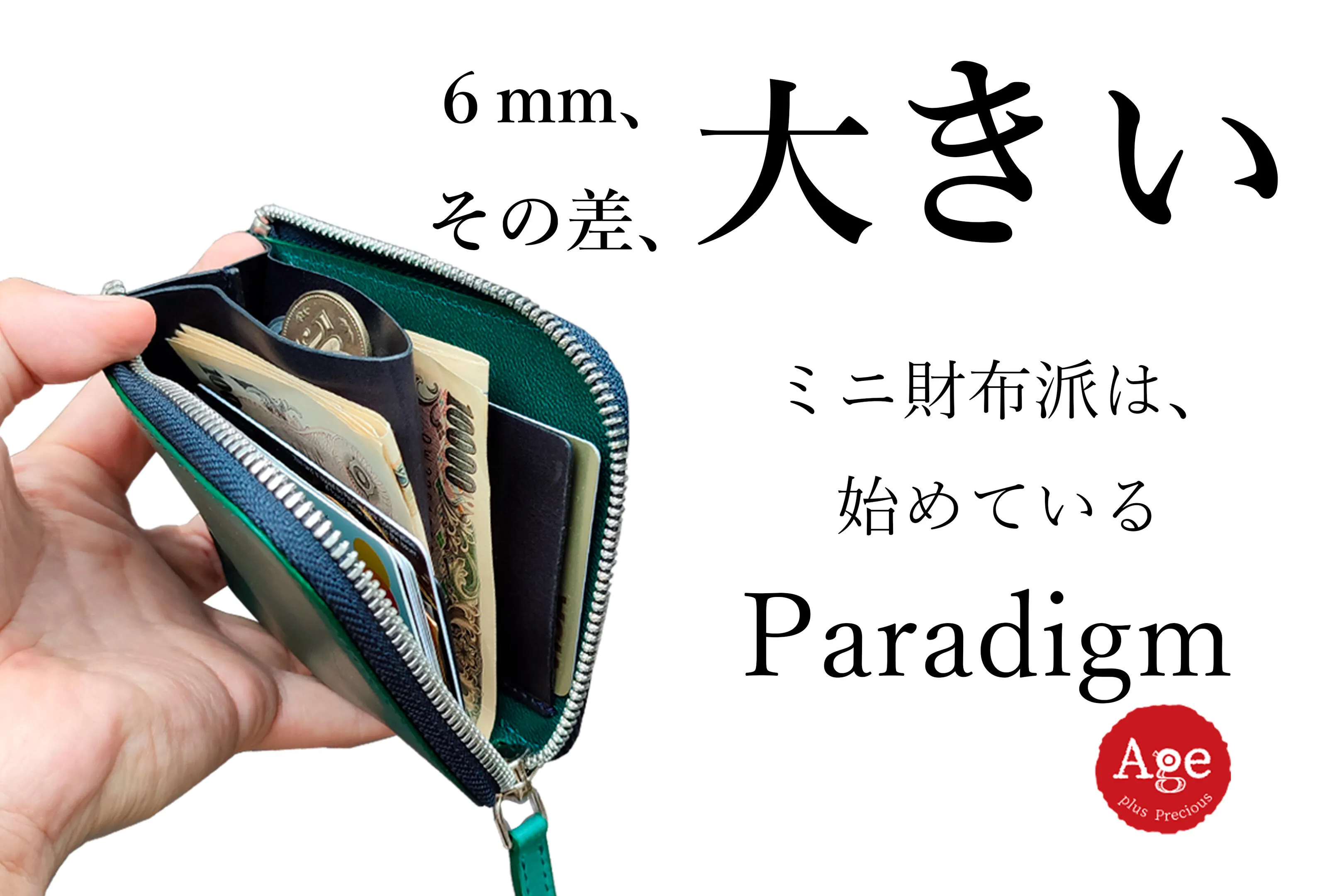 「最小こそ最高、という概念(Paradigm)からシフトする」をコンセプトに最小サイズから6mmだけ大きく制作したL型ファスナー財布です