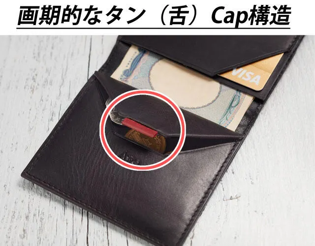 一番の特徴は小銭入れの「タン(舌)Cap構造」(特許申請中)です。