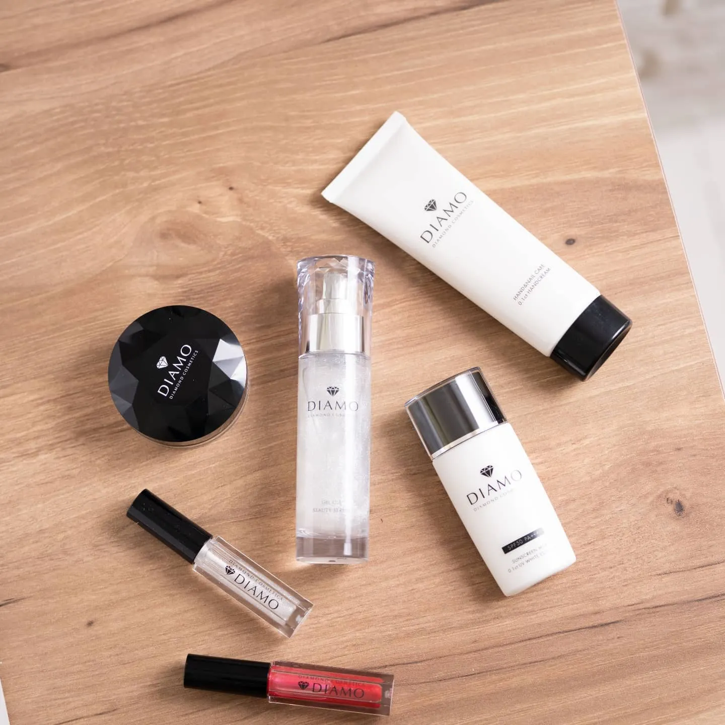 ダイヤモンド配合コスメシリーズ「DIAMO」は、ジュエリーのように輝くお肌を実現します。コスメティックジュエリー「塗るダイヤモンド」