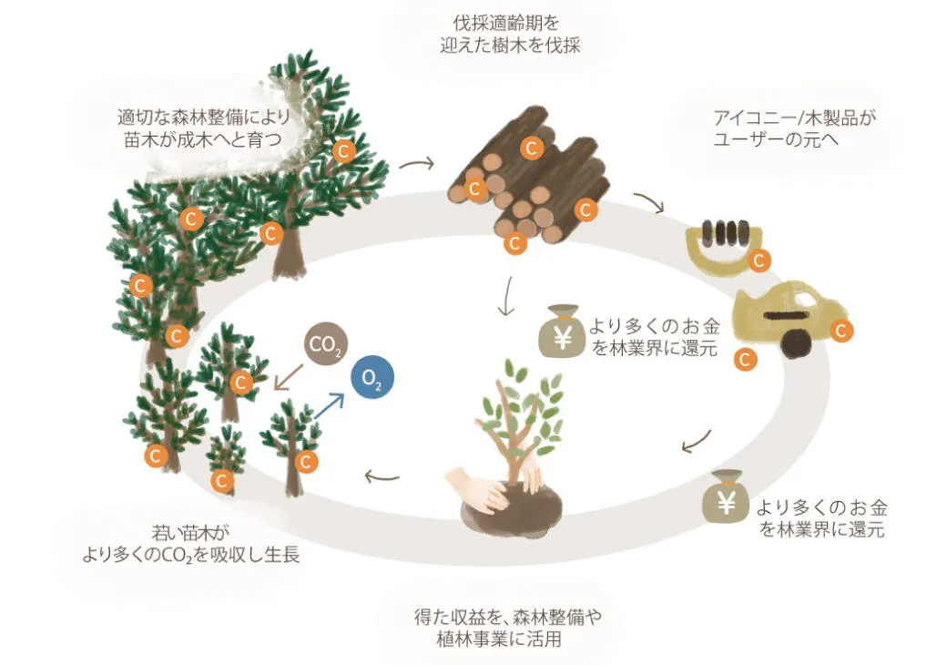 林地残材はバイオマス燃料として活用されることも多いですが、「長年生きてきた木が燃やされてしまうことは悲しい」という思いから、このブランドは生まれています。
