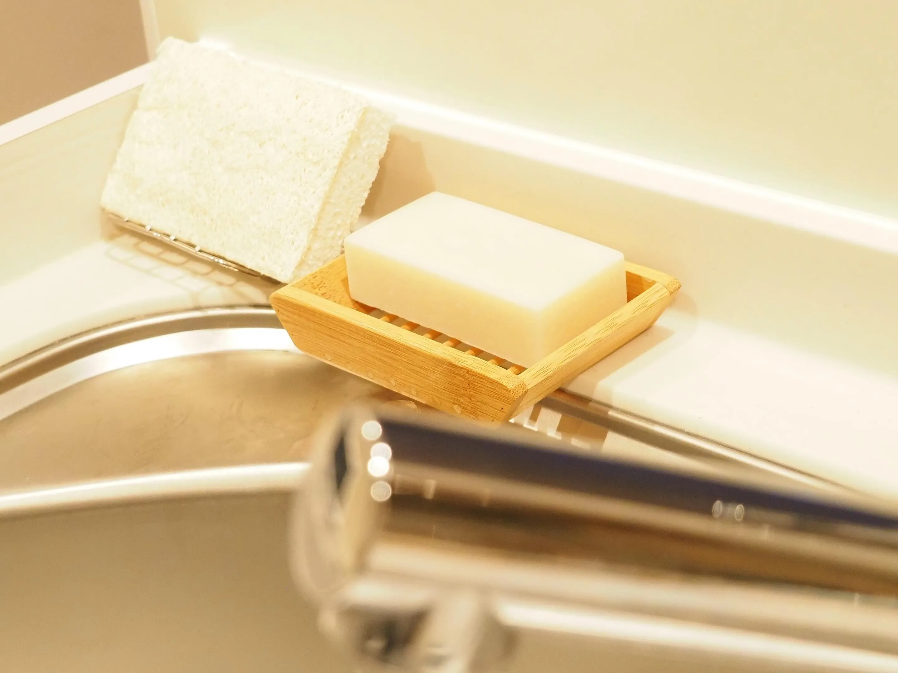 底の格子が細くスペースも狭いので、石けんの水切りがしやすく、