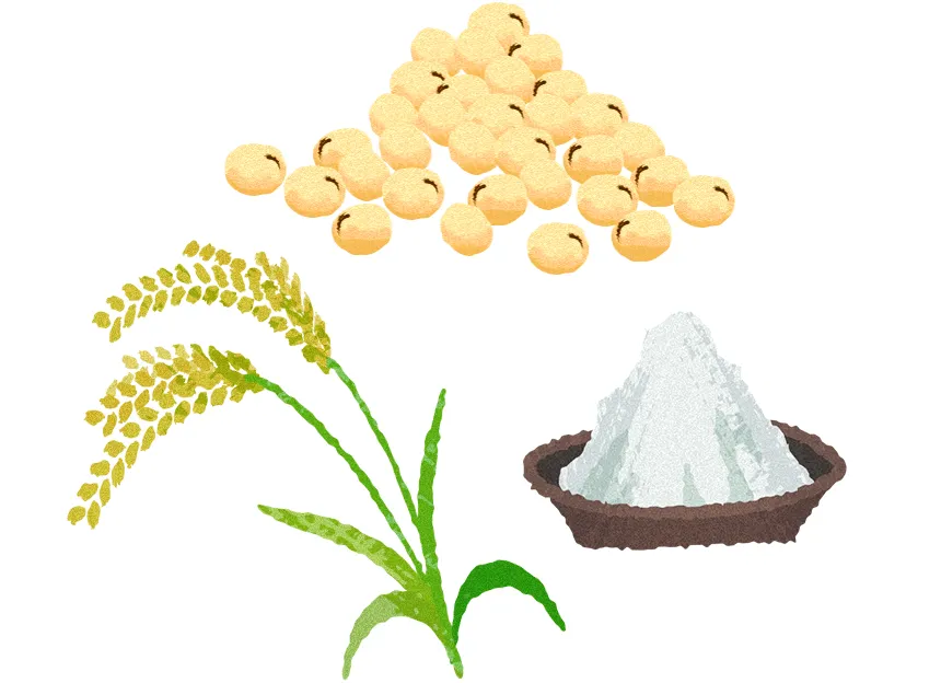 原材料の大豆および米は島根県産、鳥取県産を中心とした国産原料のみを使用しております。